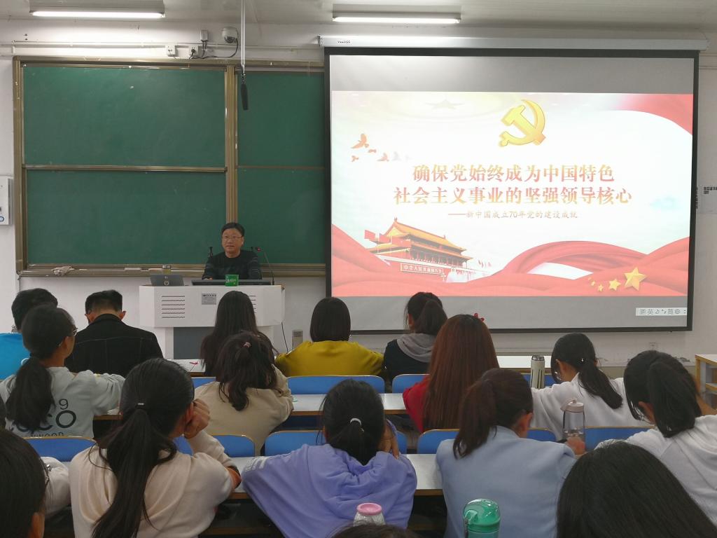 程晋富以新中国成立70年以来党的建设成就为切入点,分三个时期即“新中国成立后至改革开放前”、“改革开放新时期”和“十八大以来”,全面深入地解析党的建设内容和特点。何晓坚通过对不同阶段党的建设取得成就的阐述,让同学们进一步了解从严治党、切实解决提高党的领导水平和党的抵御风险能力提高的必要性。