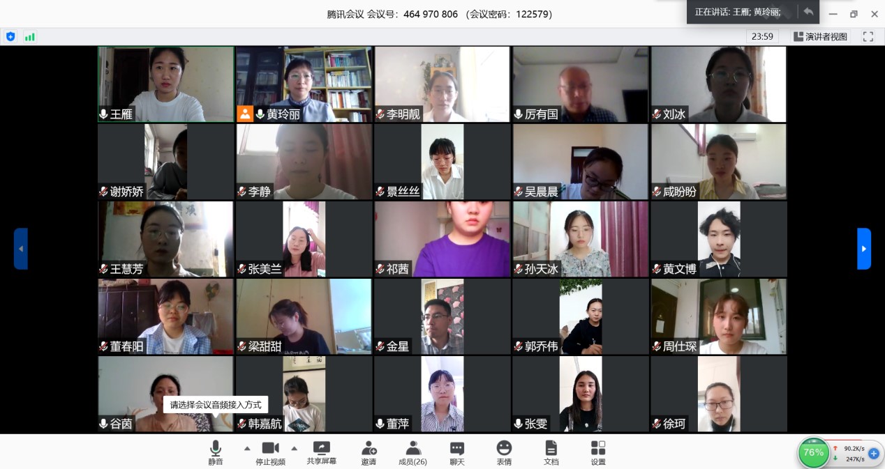 政治学教研室于5月15日下午三点通过腾讯会议平台开展了2020届本科生线上毕业论文答辩会议。周智、厉有国、黄玲丽、谷茵作为答辩专家组老师出席会议,24名学生参加此次会议。会议由答辩组组长厉有国主持。