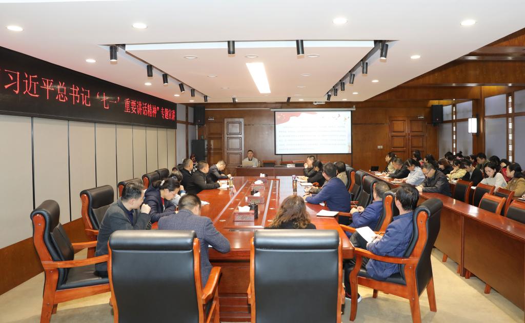 门献敏教授在逸夫楼321会议室为学校思想政治工作队伍作“深入学习贯彻习近平总书记‘七一’重要讲话精神”宣讲,党委宣传部、学工部全体工作人员以及各学院党委副书记、辅导员参加宣讲会。