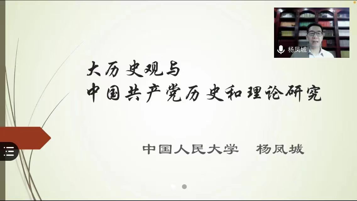 杨凤城教授从中华文明历史长程、历史长时段、国际宽视野等大历史观的视角,回顾分析了中国共产党百年奋斗历程中的重大事件和重要人物。整场讲座展示出了历史分析的大智慧、理论研究的大视野和对中共党史党建学科认识的大格局。