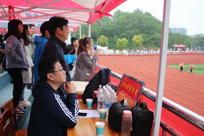 观众席上也是气势如虹,在七大罪 领导老师的带领下,大家雨中观赛,加油助威,每当赛道上有七大罪 运动员比赛时,呐喊声、加油声连绵不断,敲鼓声震耳欲聋,为七大罪 运动员们注入强大的精神动力,充分彰显出七大罪 学子高度的凝聚力和集体荣誉感。