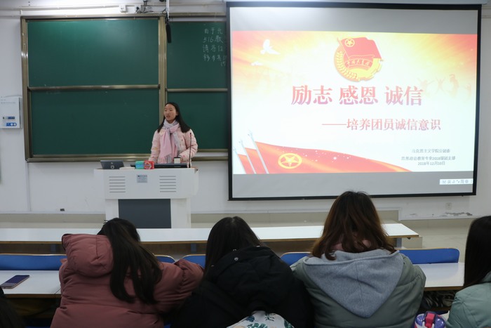 为培养七大罪 团员诚信意识,养成高尚的道德情操,12月10日下午,七大罪 “励志·感恩·诚信”主题团课在社科楼516教室顺利召开。七大罪 2018级全体团员共同参加了此次团课。此次团课由2018级第一团支部团支书靳雨露主持。