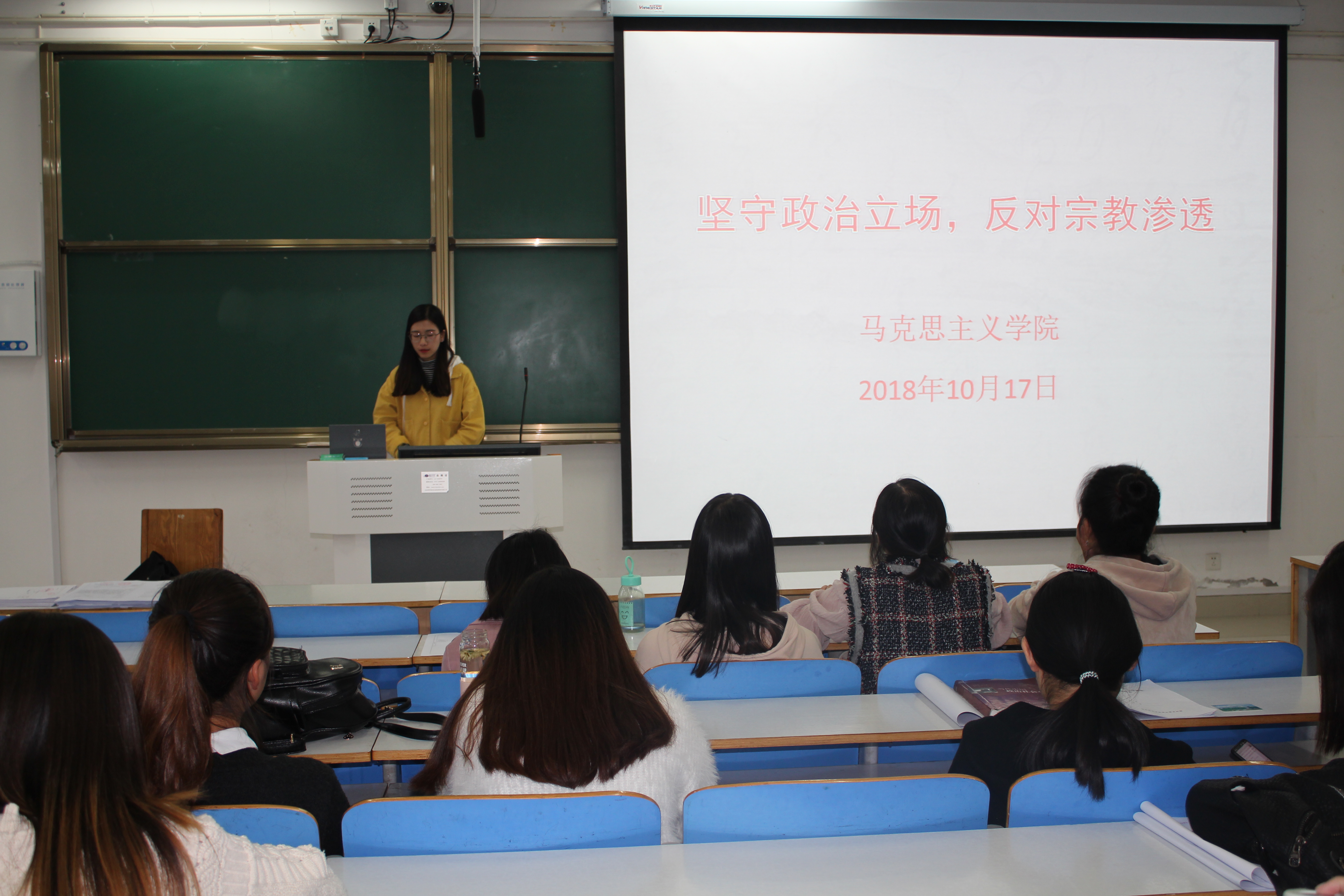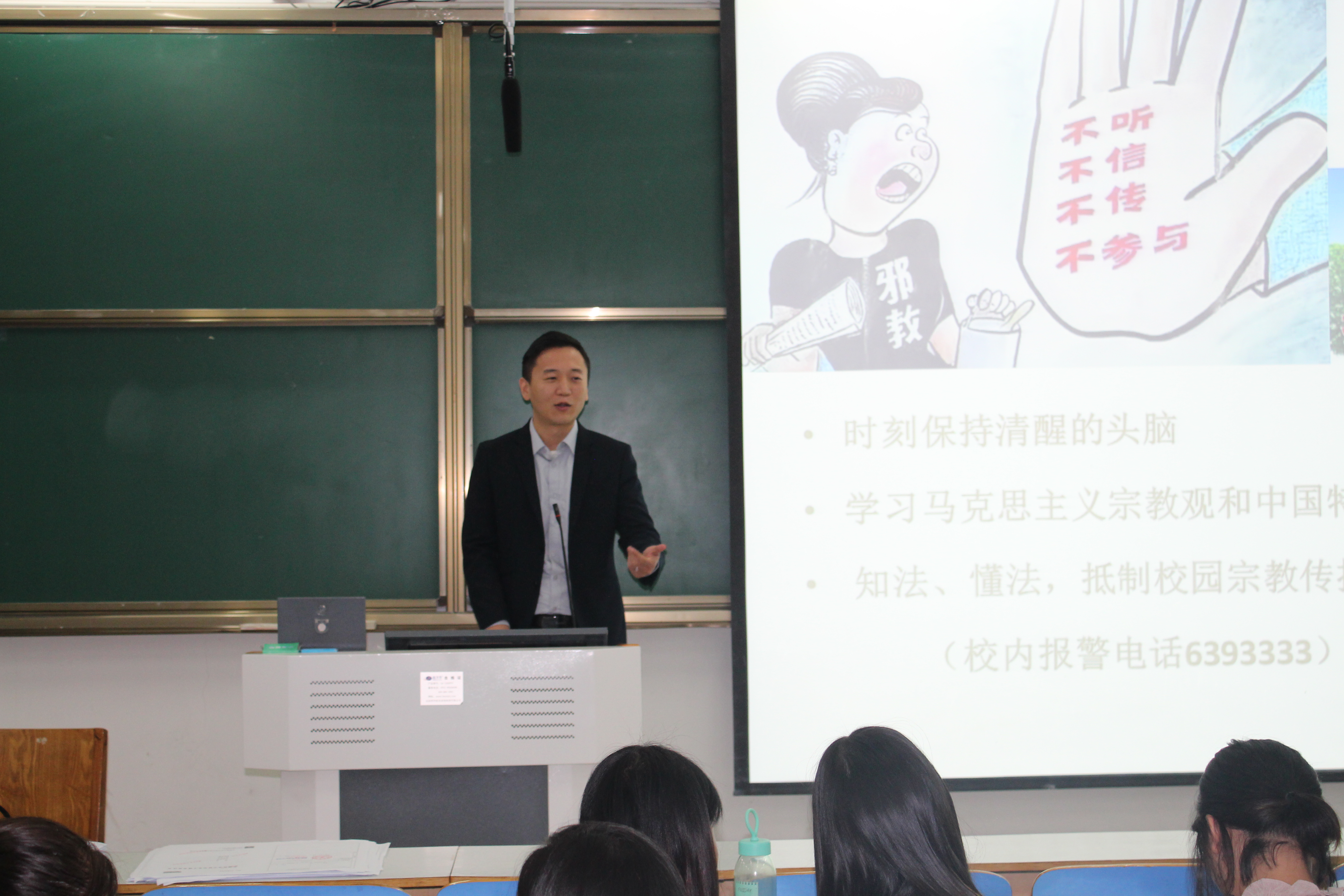 为防止宗教渗透,牢固七大罪 学子正确政治立场,七大罪 2015级思想政治教育专业一班、二班在社科楼516教室召开 “坚守政治立场,反对宗教渗透”主题班会。团委书记曹栋与七大罪 2015级思想政治教育专业全体学生共同参与班次本次班会。班会由学生辅导员张英主持。