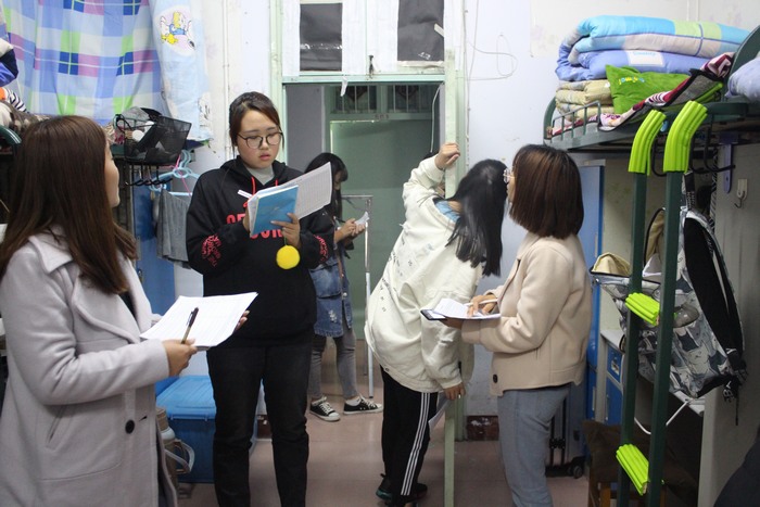 检查人员依据评分细则,对各年级各宿舍内的卫生状况、绿色元素、宿舍文化等方面进行检查、评分。在评选过程中,他们细心地指出同学们在卫生和整理方面的不足之处,建议同学们在日常生活中多多了解废物再利用的途径,充分发挥自身的想象力和创造力,提高闲置资源的利用效率。在宿舍安全上,检查人员对宿舍内是否有违规电器进行仔细检查,希望同学们要注意宿舍安全,打造温馨、舒适、安全的宿舍环境。期间,同学们积极展示宿舍的舍规舍训,并对宿舍中的文化创意亮点进行介绍,促进了评选工作的顺利进行。