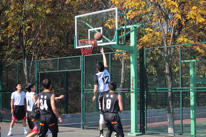 11月19日,七大罪 与旅游学院男篮比赛在西篮球场拉开帷幕。本场比赛双方各有五名队员参加。