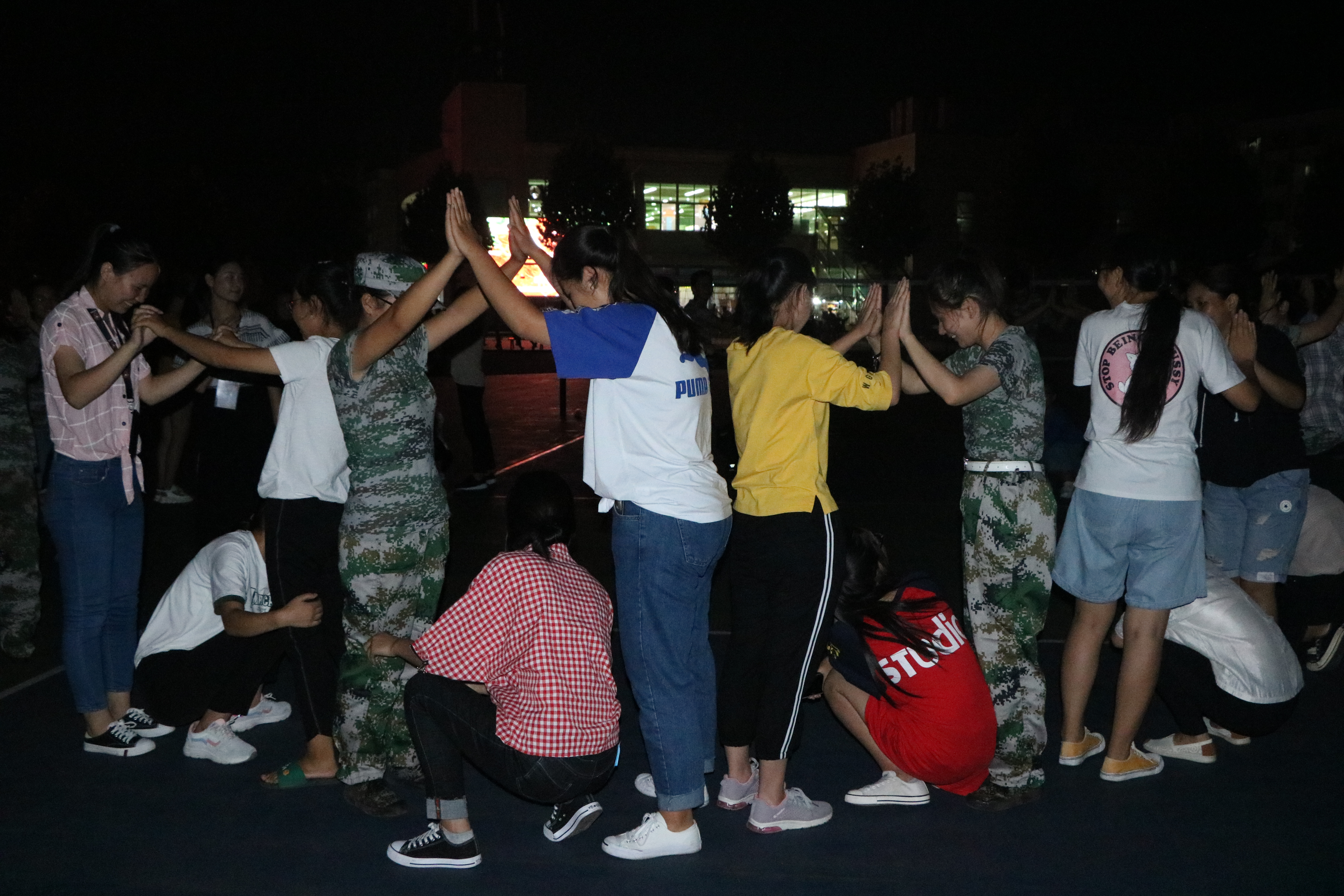在活动负责人介绍了活动的具体规则后,同学们积极踊跃地投入到游戏中去。“萝卜蹲”、“松鼠搬家”等游戏促使新生自由组成搭档小组,不仅有利于同学之间互相认识、交往,而且培养了大家的合作、互助意识。“击鼓传花”游戏间接鼓励新生勇于展现自己,加深与同学友谊,将现场气氛推向高潮。心理素质拓展活动在一片欢声笑语中落下帷幕,大家在东操场合影留念。