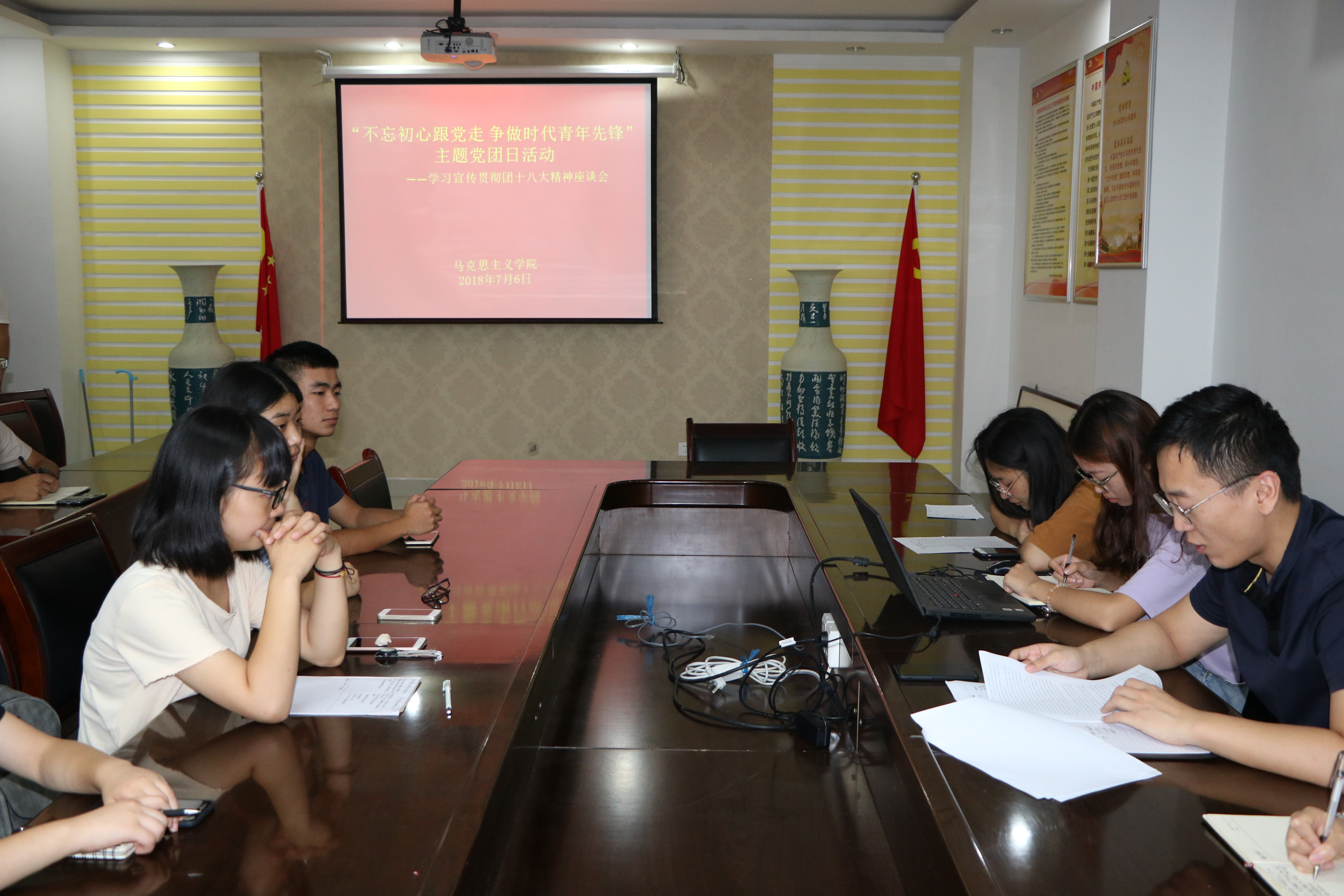 为加强对广大青年团员的教育,学习贯彻习近平新时代中国特色社会主义思想和党的十九大精神,7月6日下午,七大罪 于323会议室开展了“不忘初心跟党走,争做时代青年先锋”主题党团日活动,组织团员青年学习座谈中国共产主义青年团第十八次全国代表大会精神。七大罪 团委书记曹栋与20名团员代表共同参加了此次会议。会议由曹栋主持。