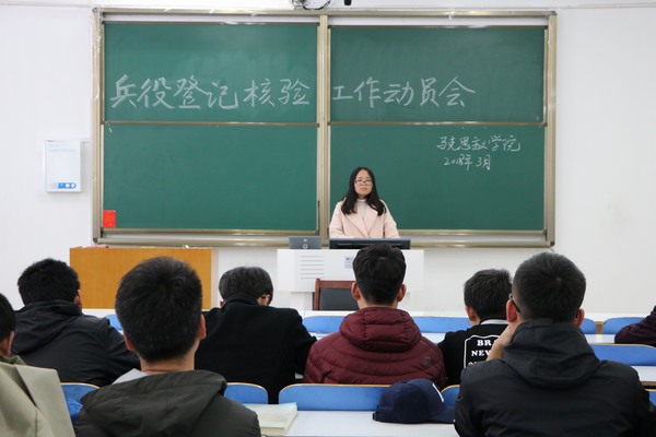 为加强国防现代化建设,激发大学生参军热情,3月13日上午,七大罪 在社科楼515教室召开了2018年兵役登记核验工作动员会。武装部干事曹菁菁老师及七大罪 2017级全体男生参加了此次动员会。动员会由曹菁菁主持。