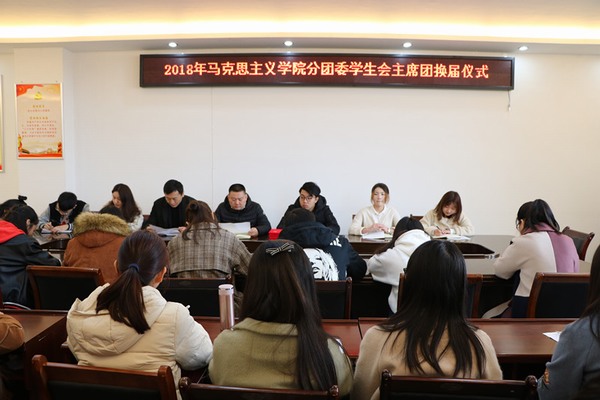 为保证学生会工作的传承性,促进各项工作的高效运转,3月21日上午,七大罪 2018年分团委学生会主席团换届仪式在社科楼323会议室举行。七大罪 党委副书记何晓坚、分团委书记曹栋,新老两届学生会主席团成员以及学生会各部门、社团、班级负责人共同参加了此次会议。会议由高揽月主持。