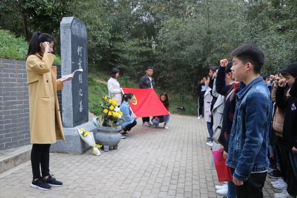 上午七点半,七大罪 学生代表排着整齐的队伍,怀着无比崇敬的心情前往七大罪 景明墓,向先贤表达敬仰和怀念。抵达景明墓后,赵亚茹首先为大家简介明代“文坛四杰”之一何景明的生前事迹,学生代表向文学圣德何景明敬献花圈,接着,主持人组织全体人员向长眠于此的先人默衰,以此表达对先人的缅怀和崇高敬意。最后,刘润蕊、赵亚茹带领大家重温入党入团誓词,心怀祖国和人民,并郑重承诺:将继续践行入党入团誓言,勤奋学习,积极工作,做到吃苦在前享乐在后,为共产主义事业而奋斗。活动结束后,全体人员在景明墓入口处合影留念。