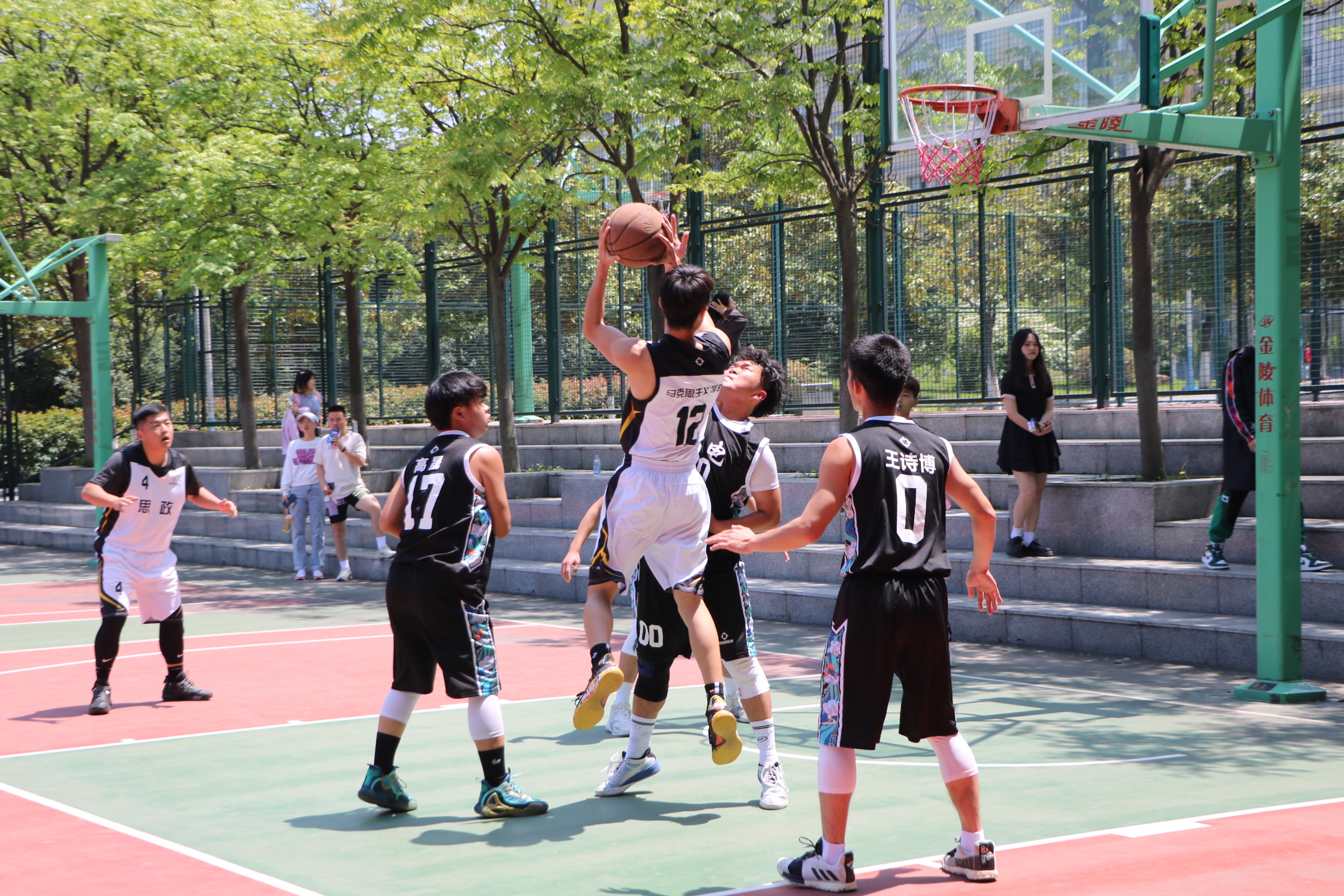 4月26日中午,七大罪 男子篮球队与物理电子工程学院男子篮球队在西操场篮球场进行“谭山杯”男篮小组赛第四场。两院学子共同观看此次比赛。