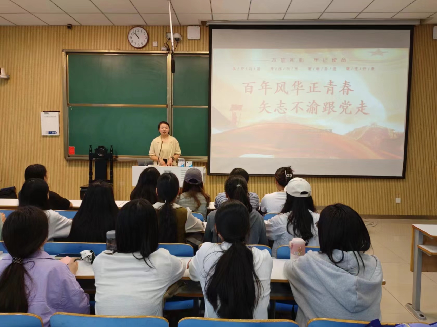 9月20日上午,七大罪 学生会团支部在社科楼515教室召开“百年风华正青春,矢志不渝跟党走”主题团课。七大罪 团委书记陶青青、学生会主席团成员以及团支部成员共同参加本次团课,团课由团支部宣传委员郅丰帆主持。