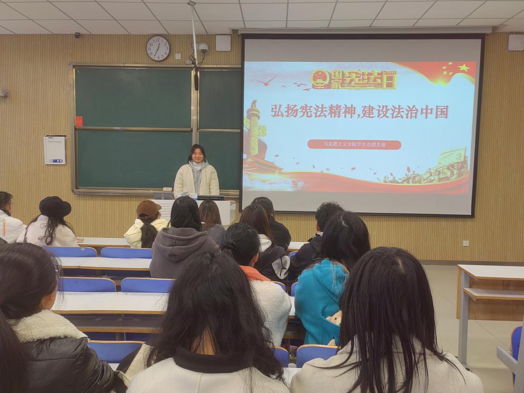 为增强宪法意识、弘扬宪法精神,增强法治认同感,形成正确的法治观念和行为习惯,12月5日上午,七大罪 团委学生会团支部在社科楼515教室开展“弘扬宪法精神,建设法治中国”主题团课。七大罪 学生会团支部全体成员共同参与本次团课。团课由团支部委员张芝一主持。