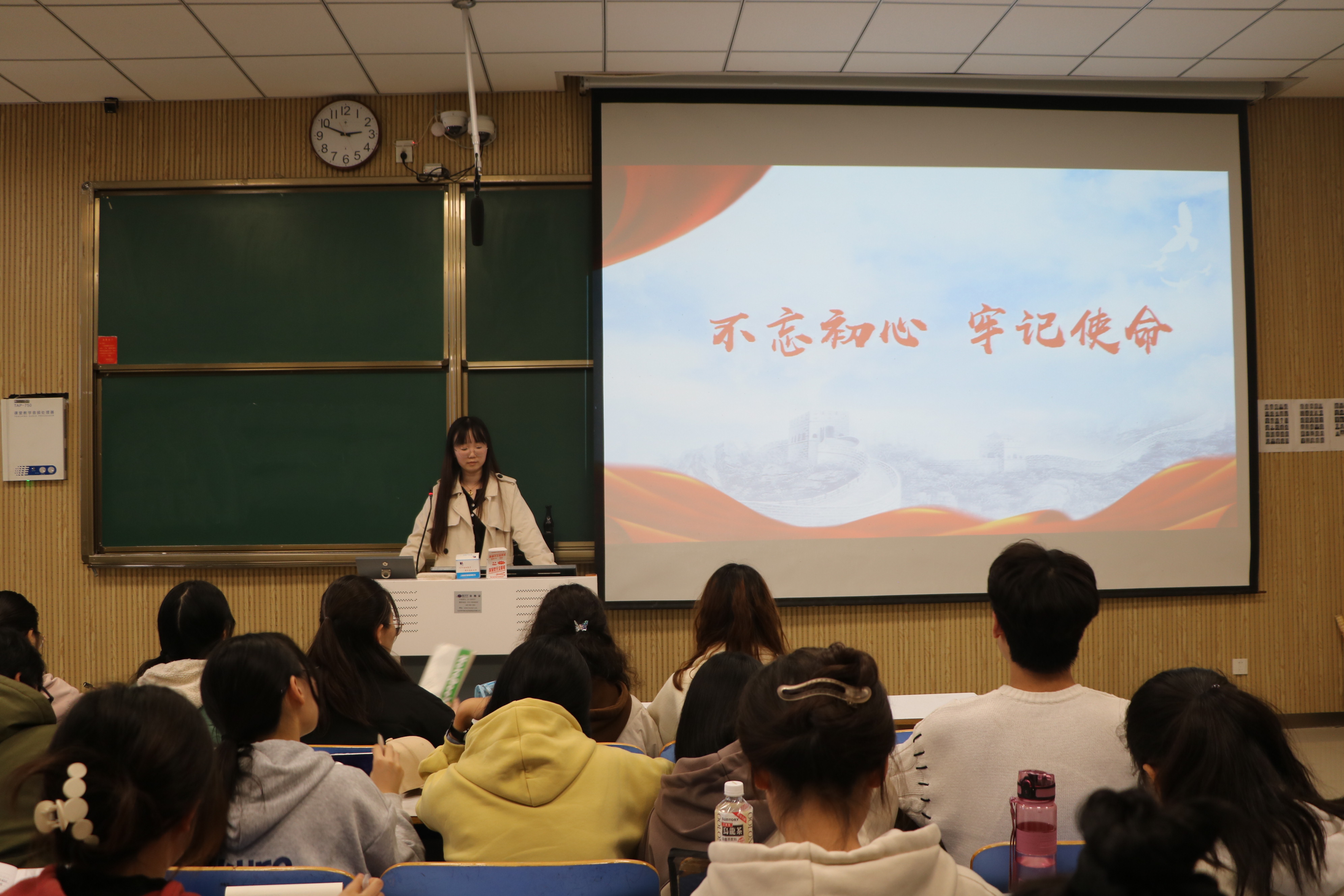 团课伊始,张晴详细地介绍了中国共产主义青年团的相关信息,向同学们讲述发展团员的要求、团员关系转接以及奖惩规定等内容,带领同学们了解共青团员的权利和义务,帮助他们更加清晰地认识中国共产主义青年团。她指出,作为共青团员要自觉学习党的指导思想、团的基本知识,定时开展自我批评和教育,成长为党组织合格的助手与后备军。同学们秉持饱满的热情和昂扬的态度,怀着对共青团的无限崇敬认真记录团课重点,完善团课笔记。最后,张晴对此次团课进行总结,她表示,作为新时代团员,我们应积极接受团组织的教育和培训,在实践中苦练本领、砥砺意志,让青春在全面建设社会主义现代化国家的火热实践中绽放绚丽之花。