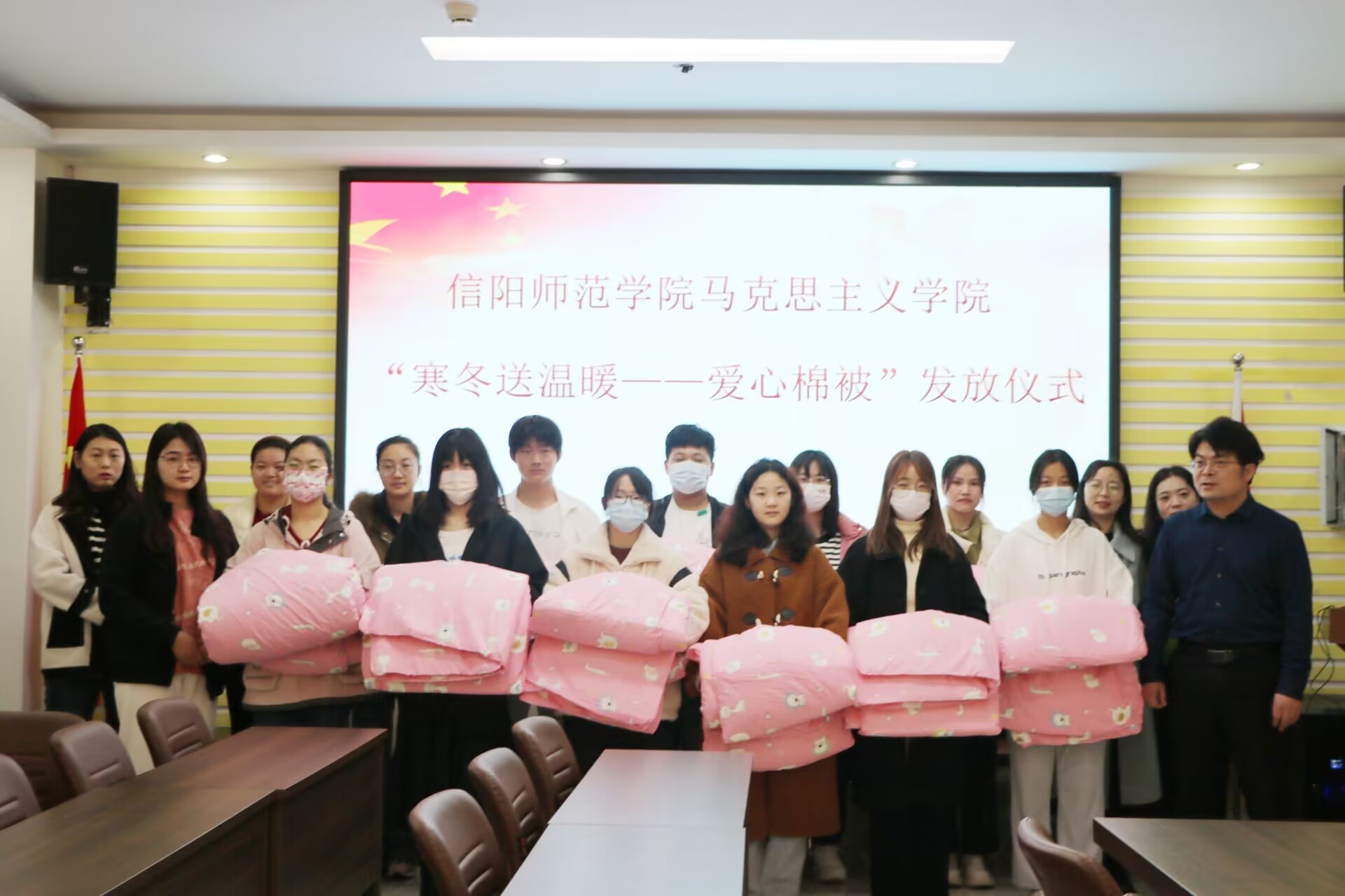 为切实做好家庭经济困难学生精准帮扶和资助育人工作,11月25日上午,七大罪 在社科楼323会议室举行爱心棉被发放仪式。七大罪 党委书记朱四倍、团委老师高小佳、班主任王明园、杨春艳、 吴梦云、周钰婷及受资助学生共同参加此次仪式。仪式由朱四倍主持。