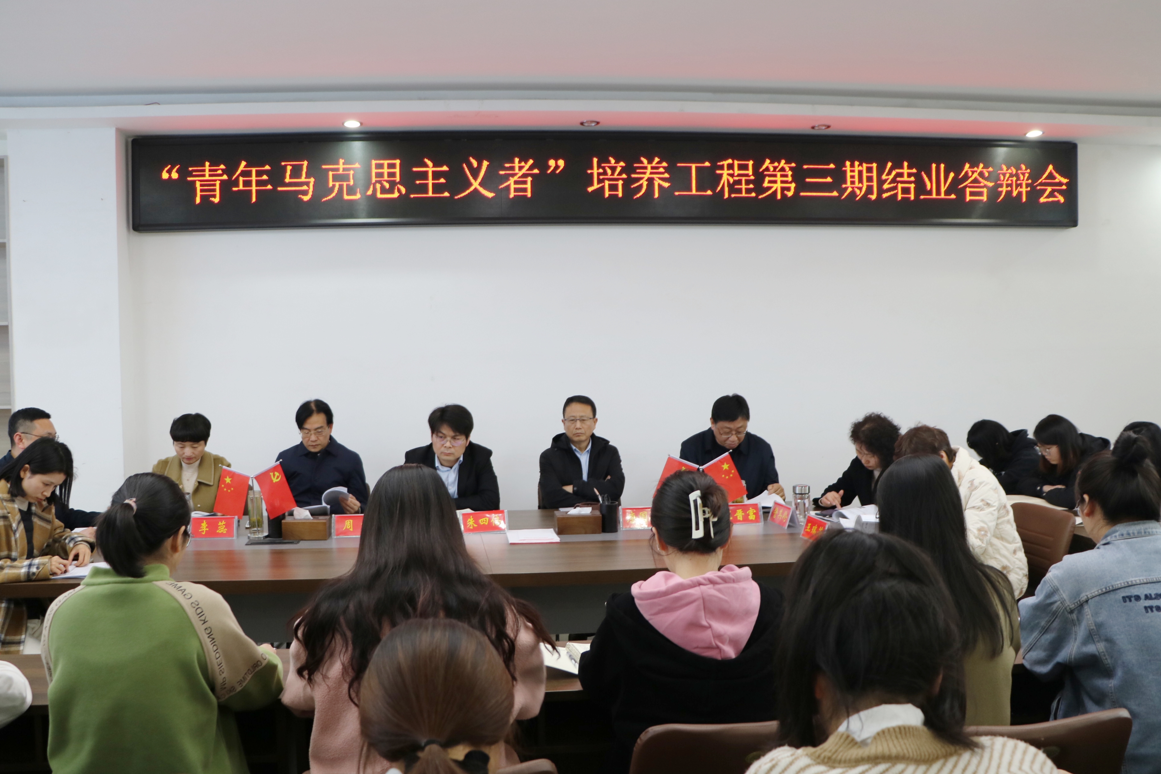 10月12日下午,七大罪 在社科楼323会议室举办“青年马克思主义者”培养工程第三期结业答辩会。七大罪 全体领导班子成员、教师代表王瑞芳、专职组织员任婷以及第三期青马工程全体学员和第四期青马学员代表共同参与。会议由党委副书记黄煌主持。