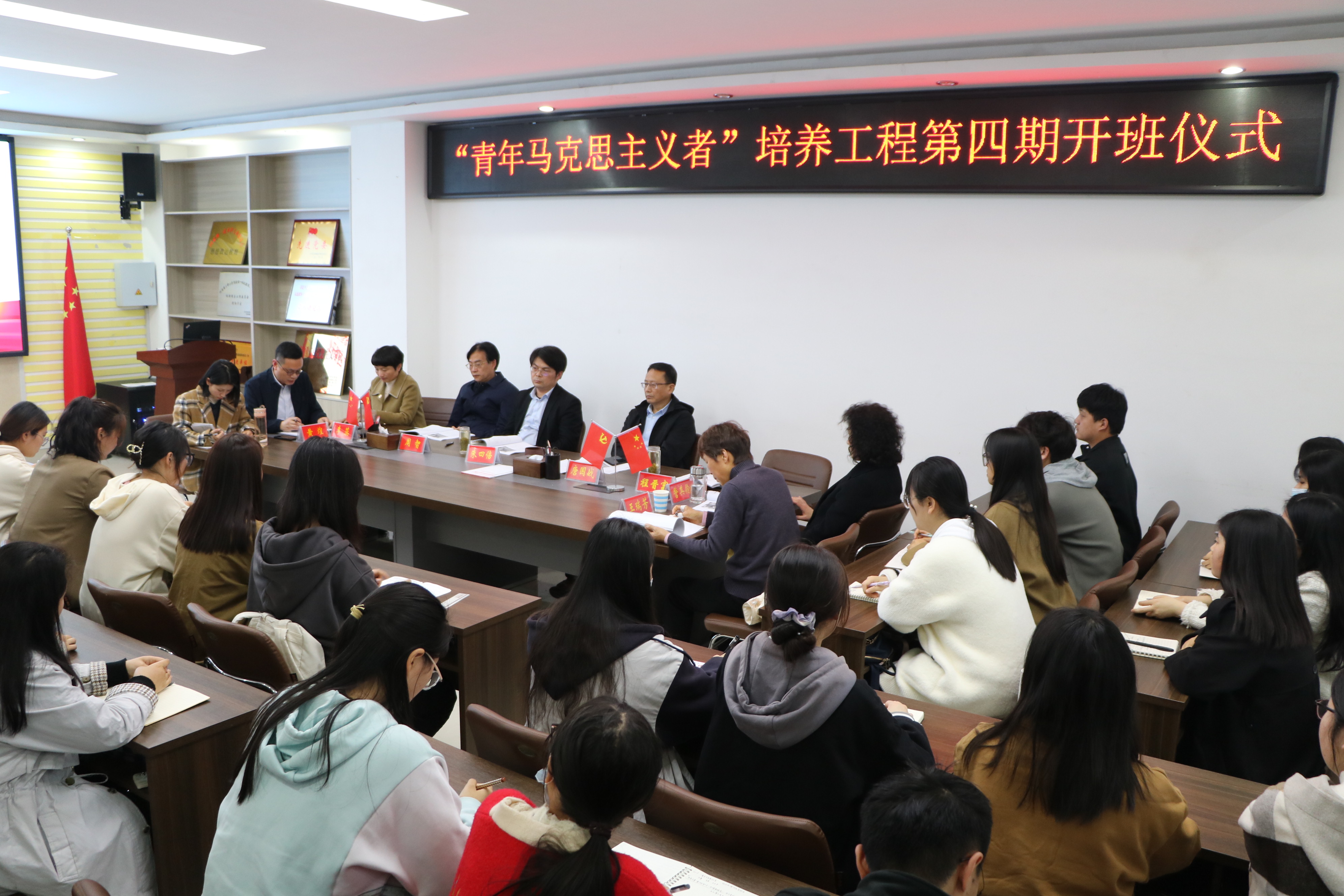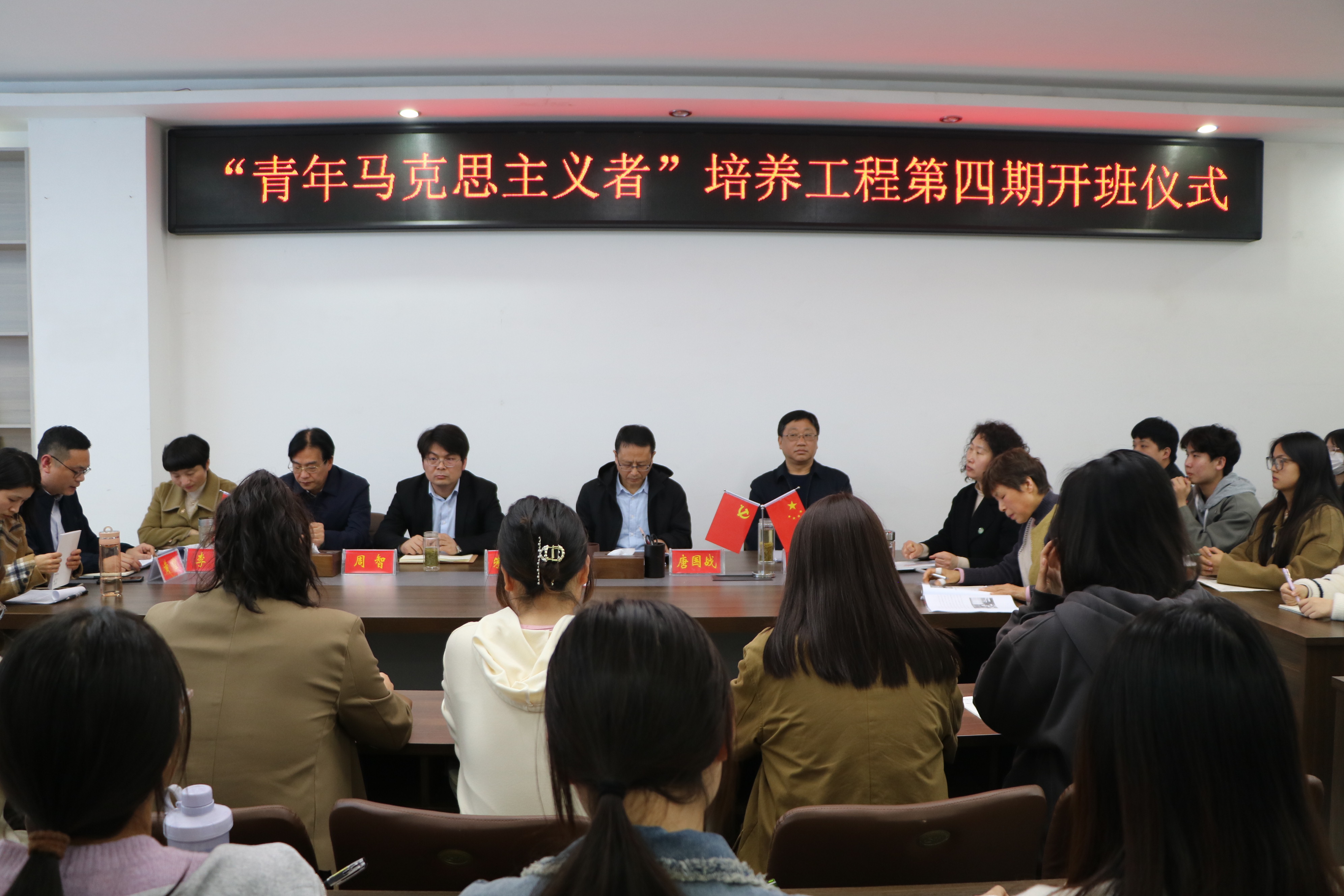 会议伊始,院长唐国战介绍了“青年马克思主义者”培养工程的相关情况。他指出,青马工程是坚定为党的事业和队伍输送新鲜血液的重要工作品牌。作为青马学员,要深入学习马克思主义理论知识,将理论学习同实践锻炼结合起来,并在生动社会实践中固信仰、长才干。接着,第三期青马工程学员代表宋佳怡和第四期青马工程学员代表张芝一逐一发言。宋佳怡畅谈学习心得、学习收获,并勉励第四期青马学员珍惜学习机会、提升专业水平。张芝一代表第四期青马学员表明将利用好青马培养班,提升思想理论水平和政治素质,成为合格青年马克思主义者,在学习、生活和工作中发挥模范带头作用。最后,党委书记朱四倍宣布第四期青马工程培训班正式启动并对青马学员提出三点要求,一具备忠诚的政治品格,坚定马克思主义信仰;二具备扎实的理论功底,不断学习理论知识武装自己;三具备突出的能力素质,敢于、勇于、善于实践,成为一名积极奉献的新时代青年马克思主义者。
