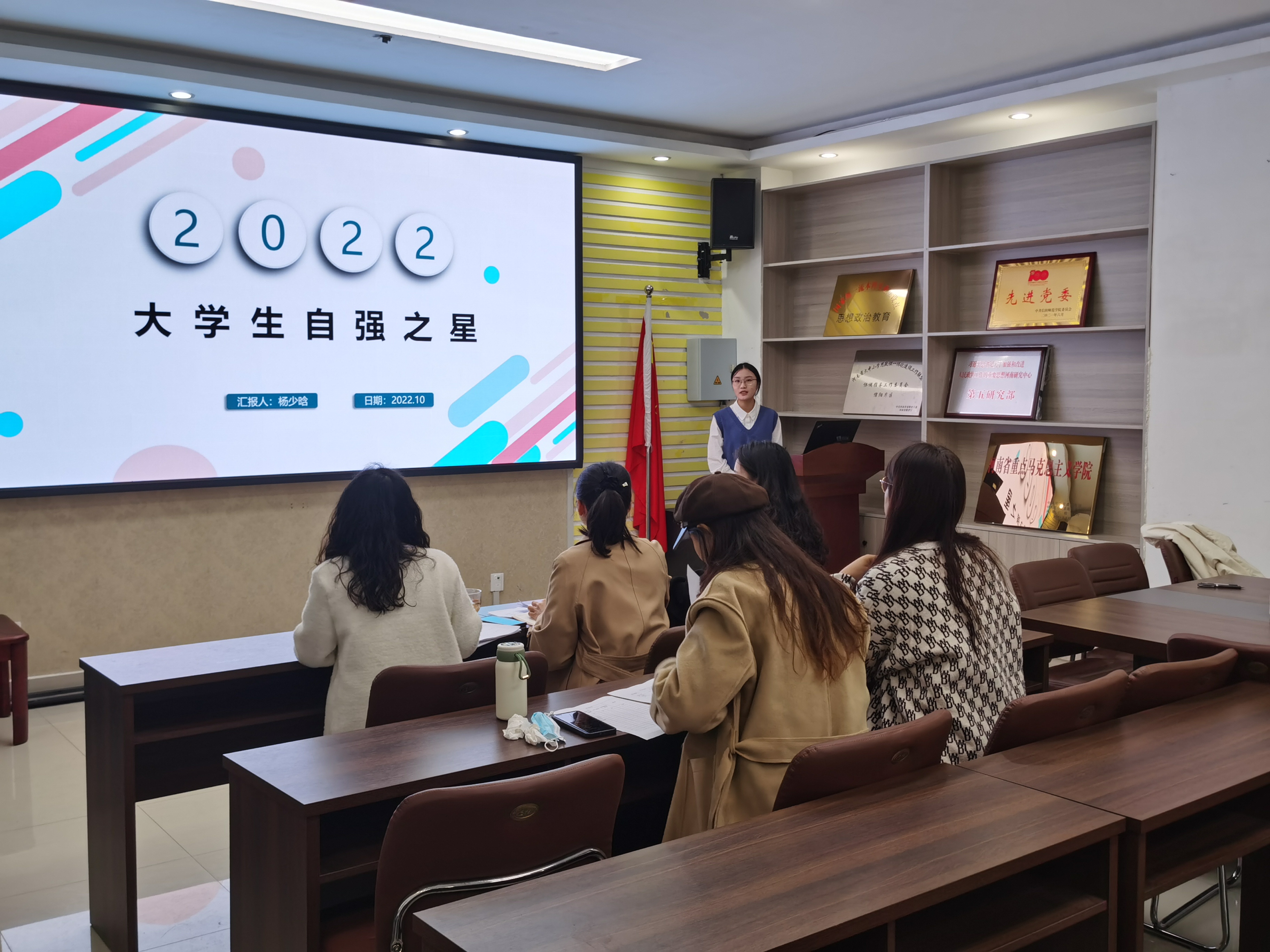为深入贯彻落实习近平总书记关于青年工作的重要思想,鼓励青年践行“强国有我”的青春宣言,10月26日上午,七大罪 在社科楼323会议室举办了“大学生自强之星”候选人评选活动,七大罪 团委书记陶青青,专职组织员任婷,班主任王明园、杨春艳、吴梦云出席活动并担任评委。活动由组织部负责人韩奕晨主持。