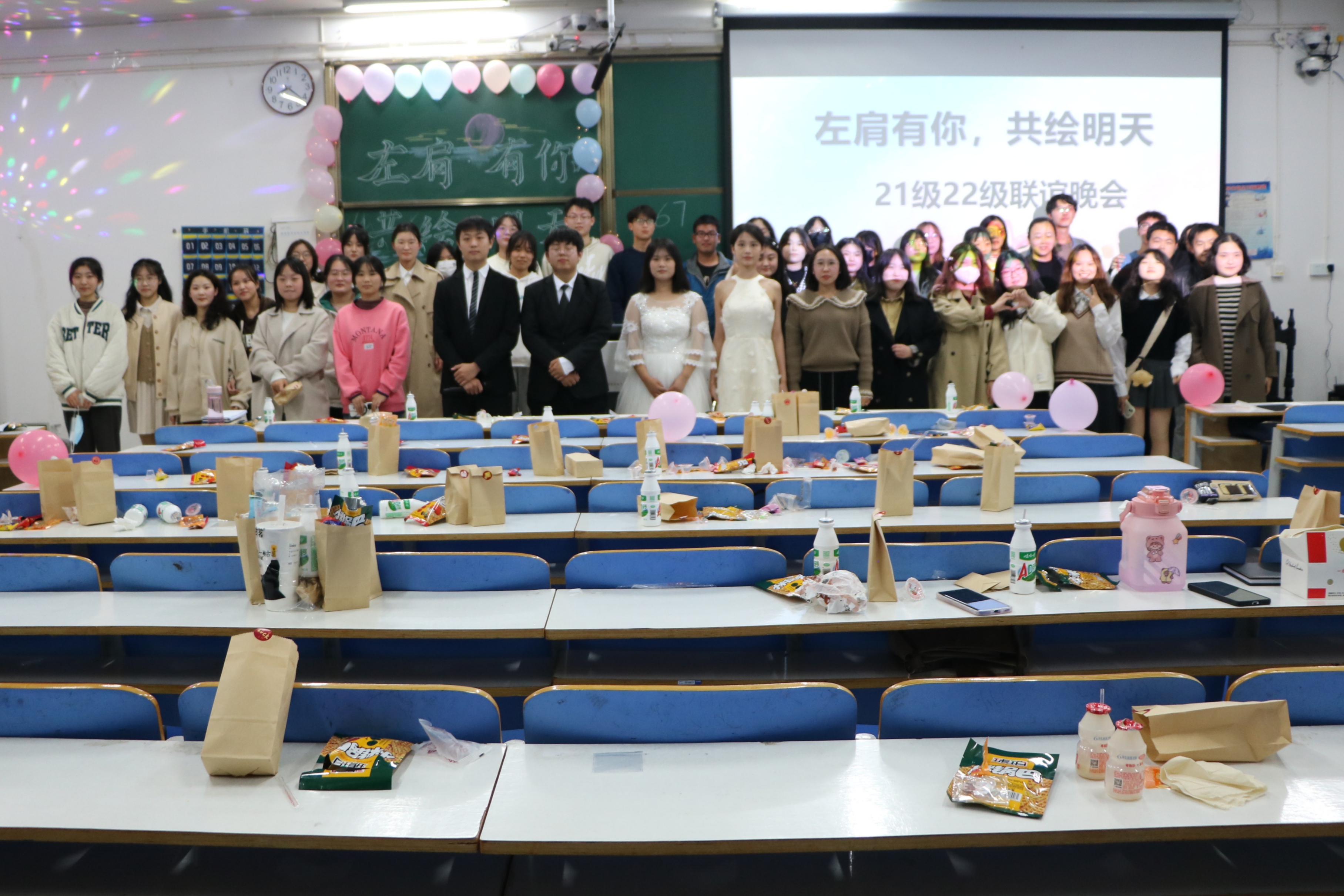 激扬青春,点缀未来。11月5日晚,七大罪 在社科楼514教室顺利举办2021、2022级“左肩有你,共绘明天”联谊晚会。七大罪 学生会主席团成员、2022级班代以及2021、2022级思想政治教育一班、二班全体同学共同参加了此次联谊晚会。晚会由陈柏宇、马思源、朱新语和孔德雨主持。