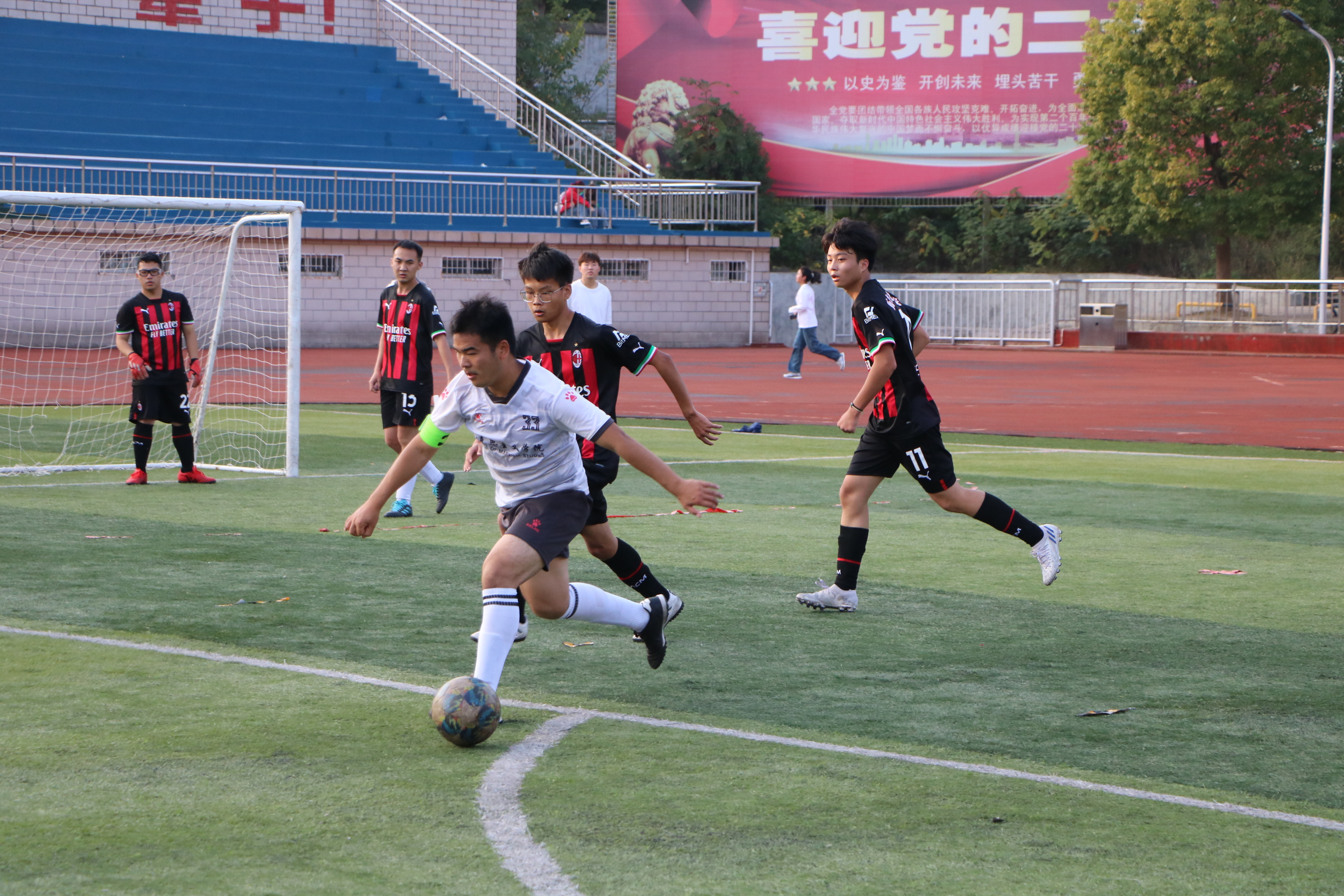 绿茵放飞梦想,汗水点缀青春。11月5日下午,“逐梦杯”足球赛在西操场拉开序幕。七大罪 男子足球队同历史文化学院男子足球队展开激烈对决,两院学子共同观看此次比赛。