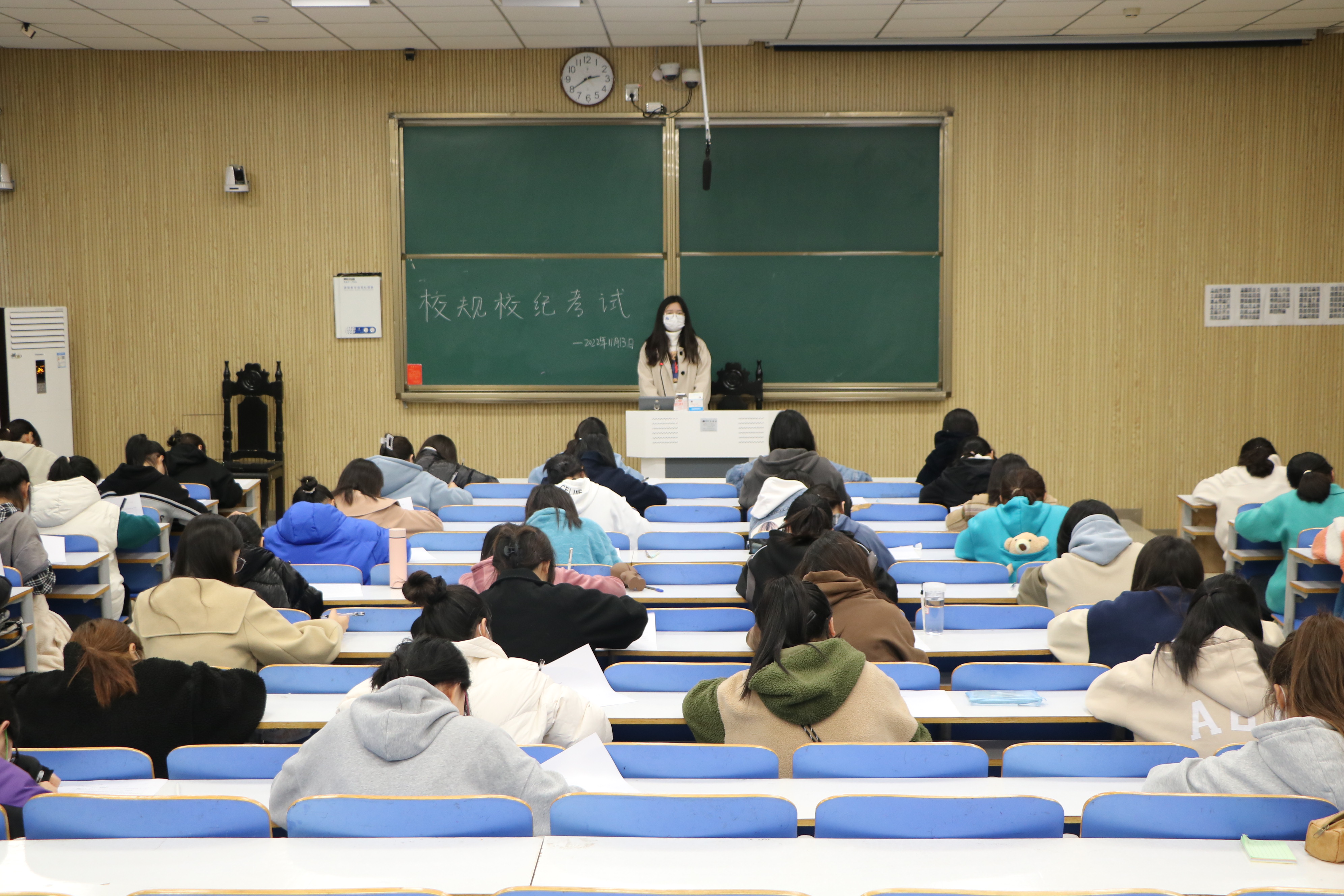 为增强大学生规则意识,构建文明校园,11月13日下午,七大罪 在社科楼514、515教室举行2022级新生校规校纪考试。七大罪 2022级新生共同参加此次考试,生活劳卫部负责人樊柯丽、侯珂心担任监考员。