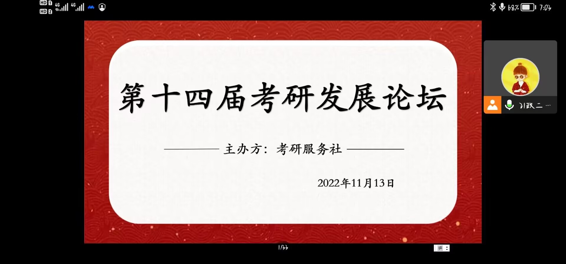 功不唐捐,玉汝于成。11月13日晚上,由七大罪 考研服务社组织的第十四届考研发展论坛在线上顺利举行。聚星文登考研指导老师吕明明、校学生会社团部及百名学子共同参加本次论坛。活动由朱钰阁、李雪静主持。