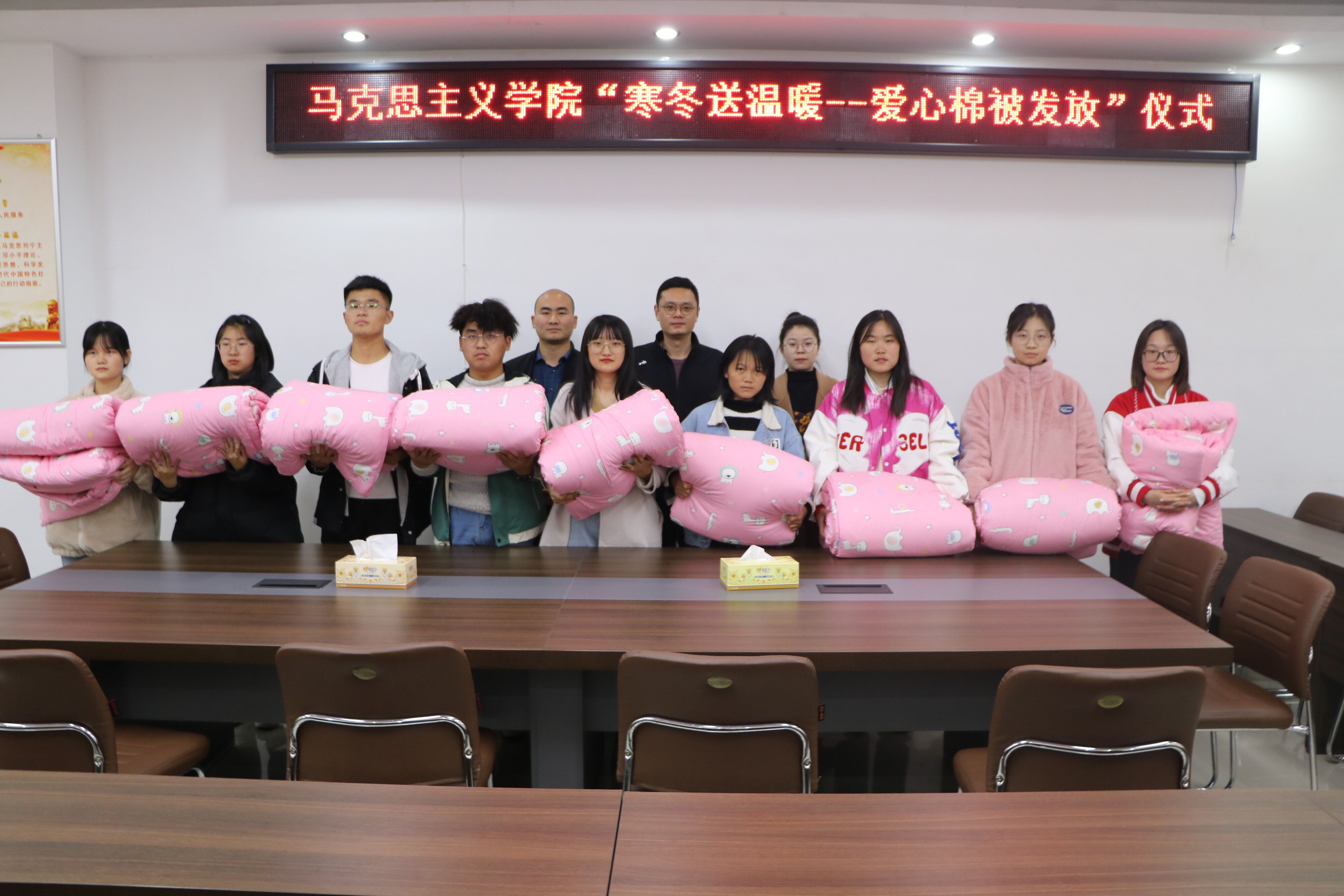 寒冬将至,温暖不止。11月26日下午,七大罪 在社科楼323会议室举行爱心棉被发放仪式。七大罪 党委副书记黄煌、班主任高小佳、周文豪及受资助学生共同参加此次仪式。仪式由黄煌主持。