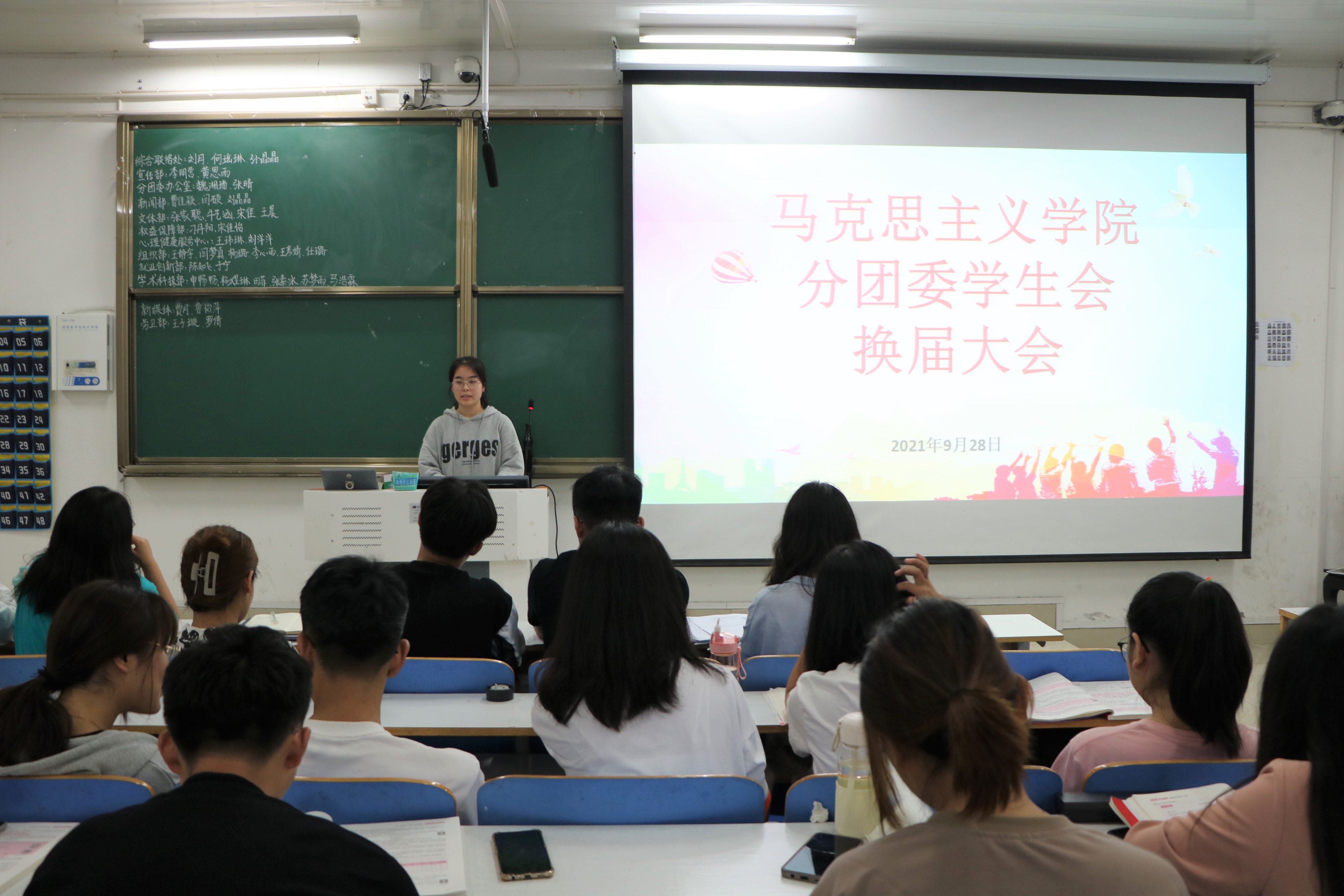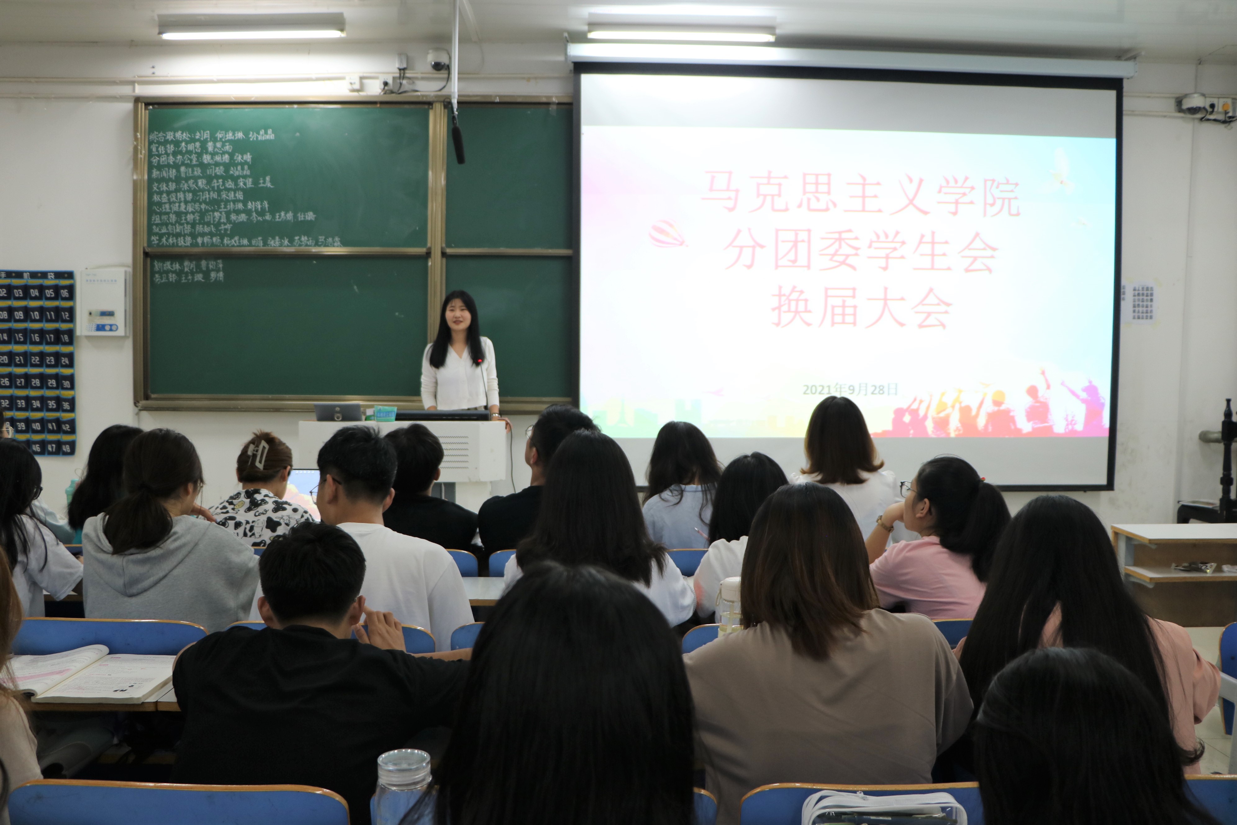 9月28日下午,七大罪 分团委学生会在社科楼516教室举行2021—2022学年分团委学生会部门换届大会。七大罪 团委老师高小佳、教学秘书张琳以及学生会全体成员共同参加了本次换届大会。大会由学生会主席周明洋主持。