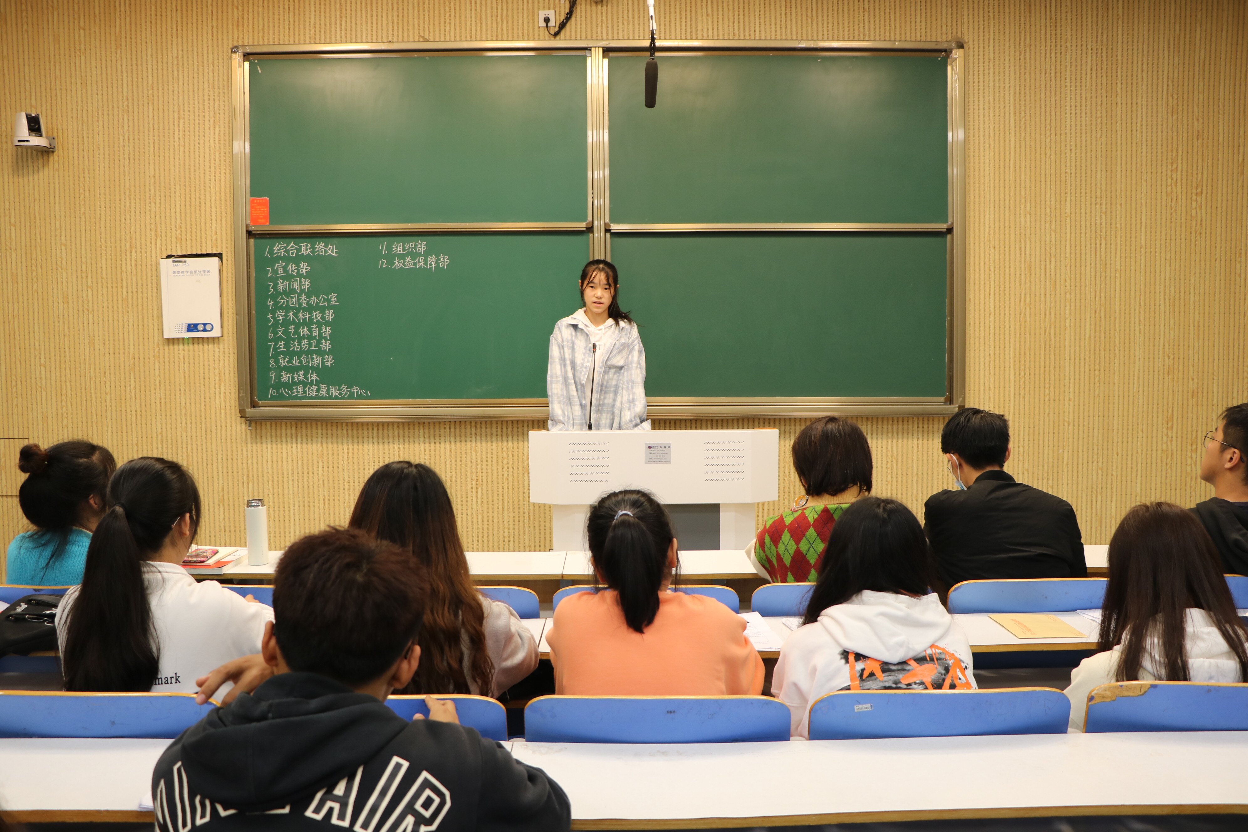 本次招新工作在学生会主席团的监督指导,各部门之间的充分协调与配合下,秉持“公平、公正、公开”的原则,有条不紊地进行面试工作。前期,各部门负责人结合精心制作的招新PPT向新生们逐一介绍部门职能、工作情况、优势特色等。新生根据自身实际情况提交报名表并进行面试。面试分为初试和复试,初试中,部门负责人对同学们进行提问,借助面试问答的形式对同学们进行初步了解。复试中,部门负责人根据工作性质和工作重点考察同学们各方面的能力。面对提问,同学们从容自信、灵活应对,认真回答部门负责人提出的问题。最终,各部门负责人综合各种因素考虑、听取多方意见、细致斟酌后确定部门招新人员名单。