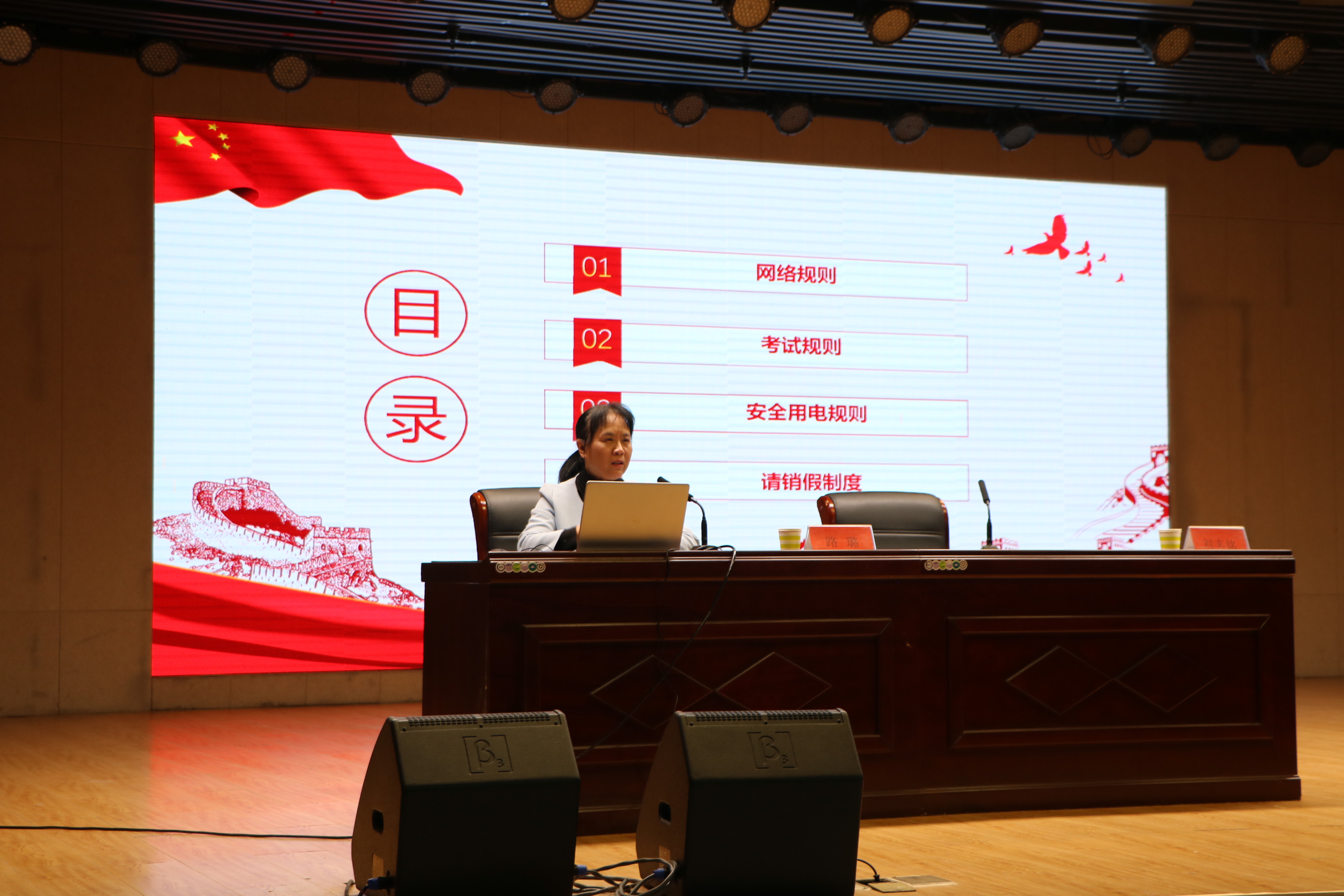 路璐以大学生规则意识的重要性为切入点,说明了高校学生养成规则意识、遵循各项规则的必要性,告诫新生团员在学习与生活中要懂规则、敬规则、守规则。随后,她从网络规则、考试规则、安全用电规则等多方面进行深度剖析,指出在全面依法治国的背景下,规则意识、法律意识将有力推动同学们形成健全的人格。在讲授过程中,她利用理论与事实案例相交织的方式,全方位地阐释规则在生命中的基石作用,帮助团员们在实例中学习领会规则意识。她强调,新生团员应当用规则铸就人生,成为真正有文化懂规矩的时代新青年。最后,路璐殷切叮嘱团员们要以思想政治教育材料为蓝本,踏实学习,杜绝考试作弊,严禁使用和存放违规电器,不触碰学校“高压线”,创文明校园环境,建有序校园新风。