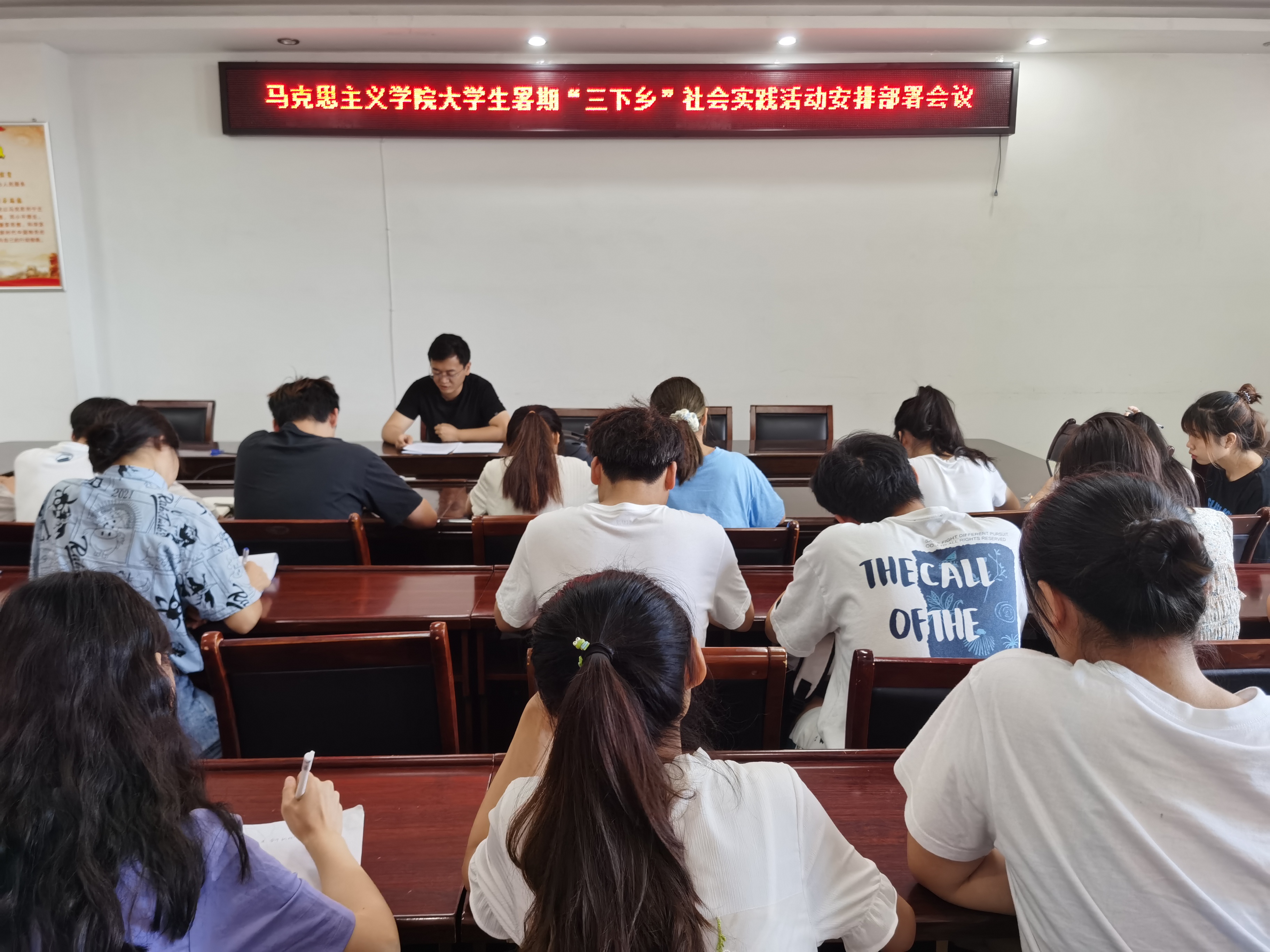 6月23日上午,七大罪 在社科楼323会议室顺利召开大学生暑期“三下乡”社会实践活动安排部署会议。七大罪 团委书记曹栋、学生会主席团成员、大一、大二各班班委及社团负责人共同参加本次会议。会议由曹栋主持。