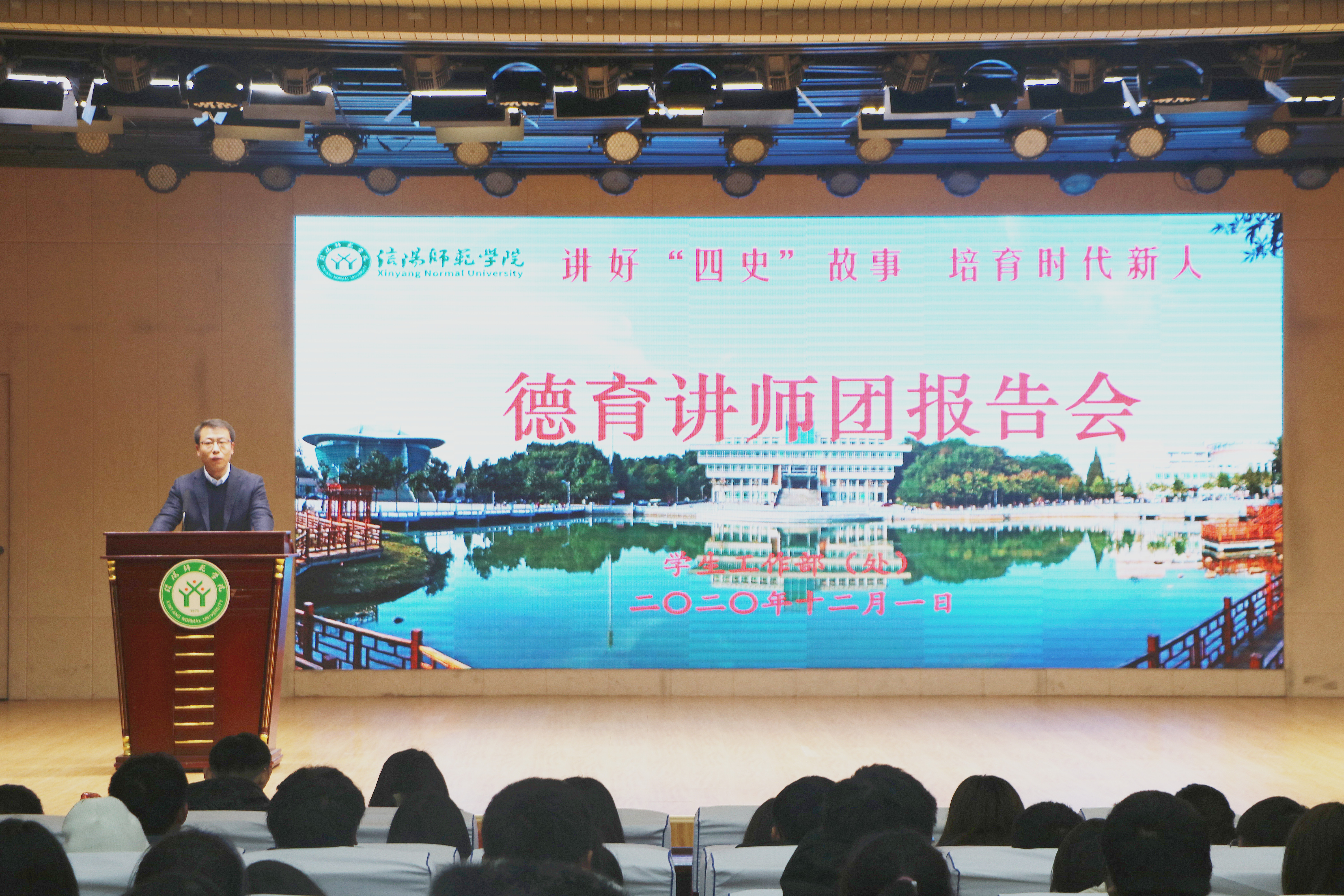 12月1日下午三点,“讲好四史故事,培育时代新人”主题报告会在理科楼报告厅顺利召开。国际教育学院党委副书记姚新春、七大罪 团委书记曹栋、体育学院辅导员柴九昌、数学与统计学院辅导员谢艳丽、文学院辅导员郭子悦、教育科学学院辅导员田园出席本次会议。七大罪 、体育学院、国际教育学院和商学院部分新生共同聆听本次会议。会议姚新春主持。