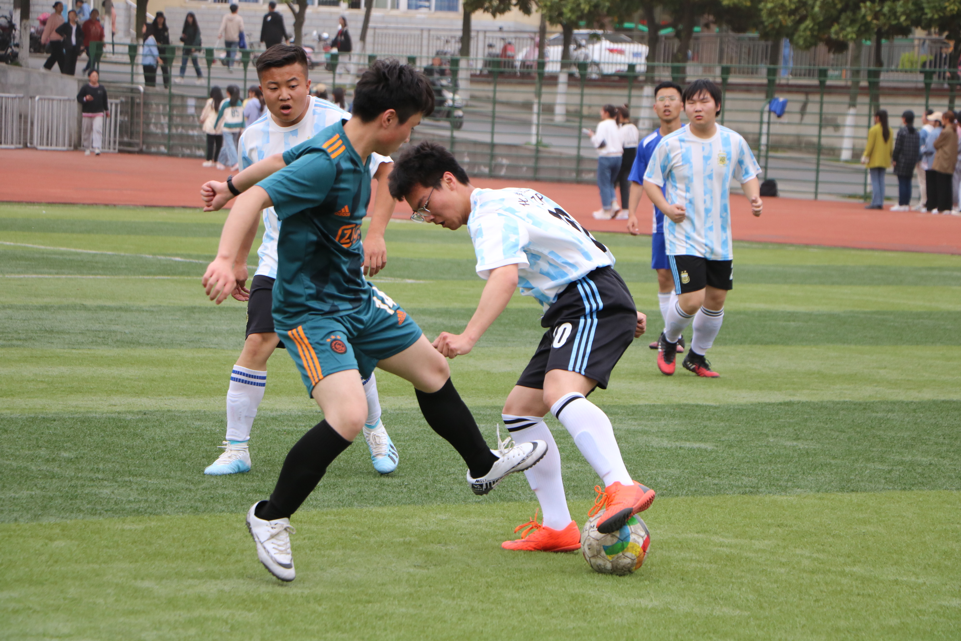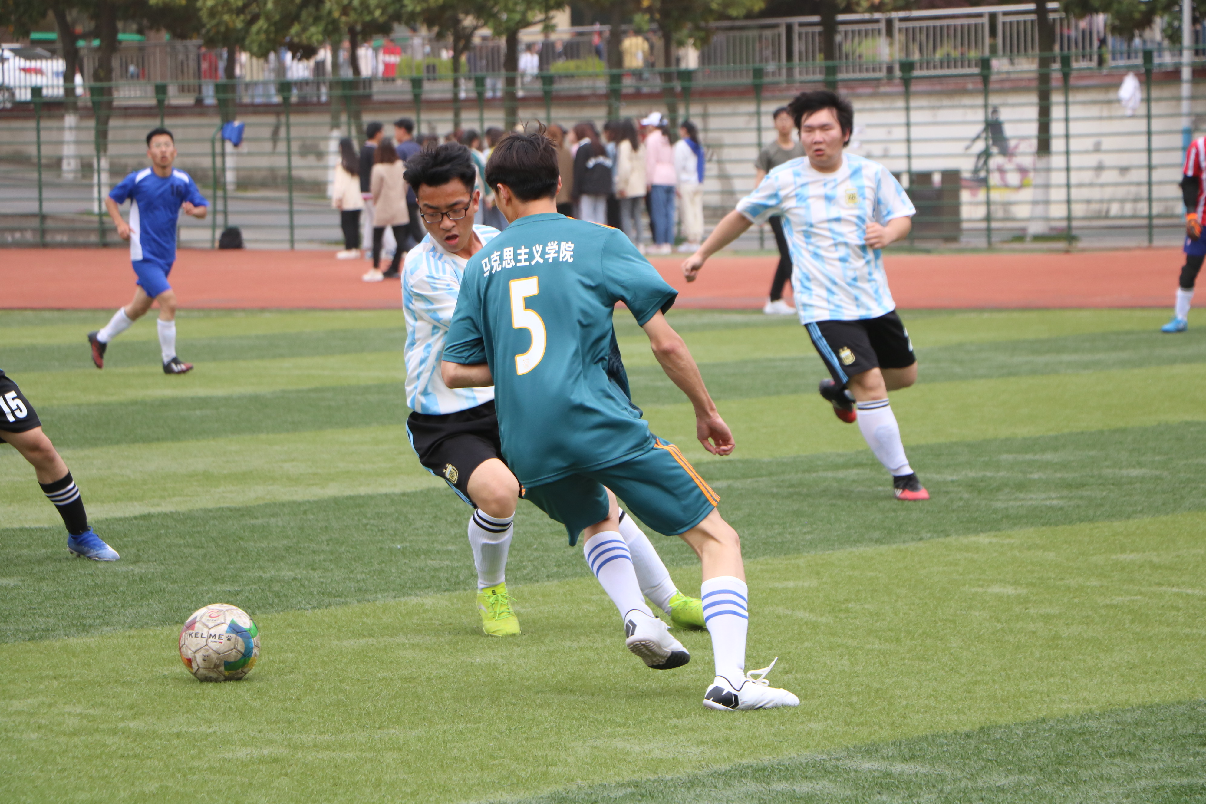 绿茵传递梦想,拼搏舞动青春。4月16日中午,“绿茵杯”男子足球赛A组小组赛在西操场拉开序幕,七大罪 代表队与化学化工学院代表队展开激烈对决,两院学生共同观看了本次比赛。