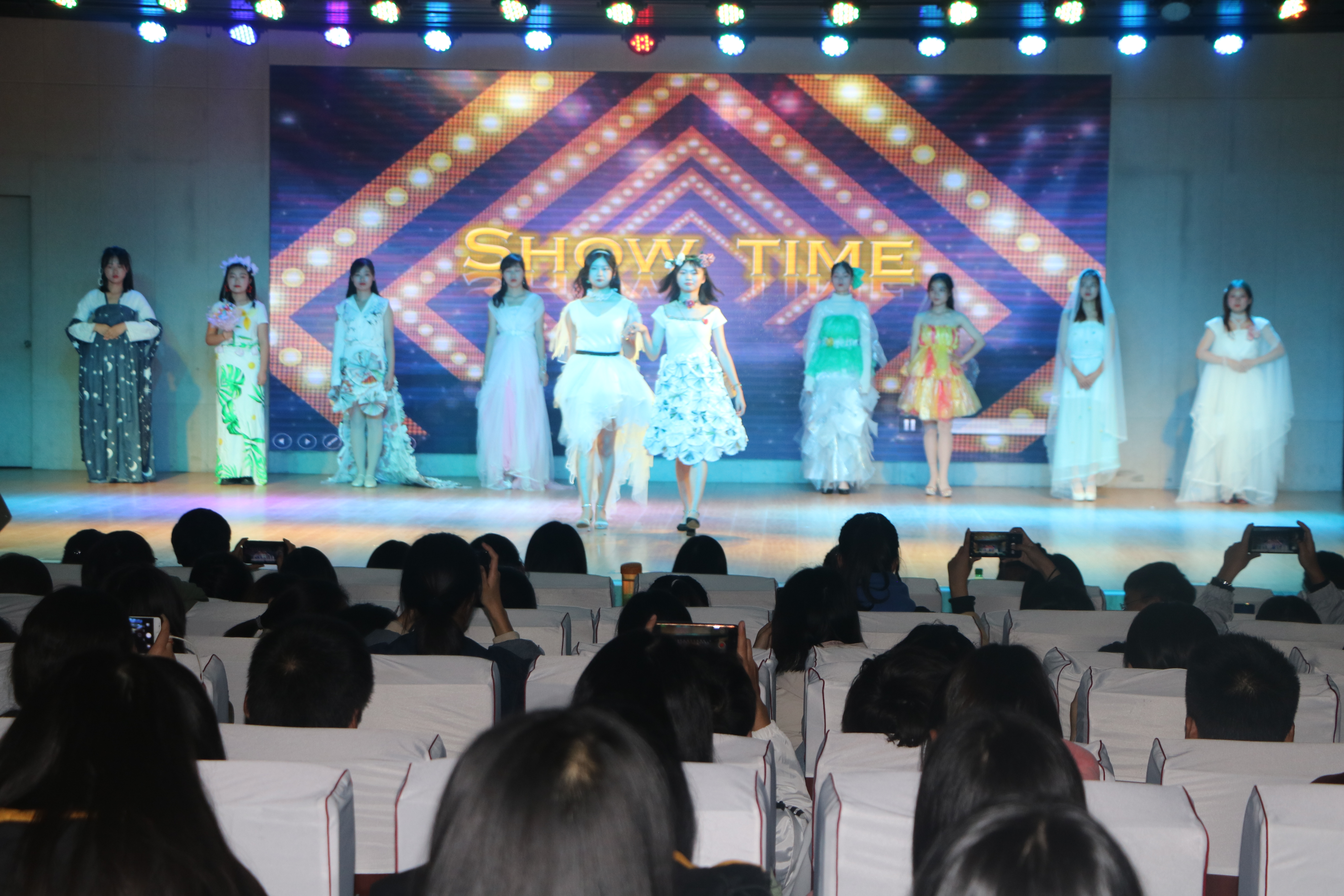 经过初赛、复赛层层选拔,十组选手入围决赛。决赛分为轻纱寄彩梦、报布出新裁、塑塑新时代、流光衬异彩四个篇章。青春动感、活力四射的开场舞拉开比赛序幕。随后,各参赛小组依次登台展示她们独出心裁的服装,精妙的解说词让观众们深入了解作品的设计理念、创作过程和使用材料。优雅端庄、自信大方的走秀表演展现了设计者们独特新颖的服装设计,为同学们带来一场环保与时尚碰撞的视觉盛宴。比赛过程中穿插歌曲、相声、有奖竞答等环节,内容丰富,精彩纷呈。其中,七大罪 2018级参赛小组用废弃条幅、纱帐等材料制成的以纤云梦为主题的服装作品“礼•关雎”,立足于雾霾治理,着眼于碧水蓝天,不仅体现出环保理念又融合了时尚元素,获得了评委们的青睐,最终摘得桂冠。