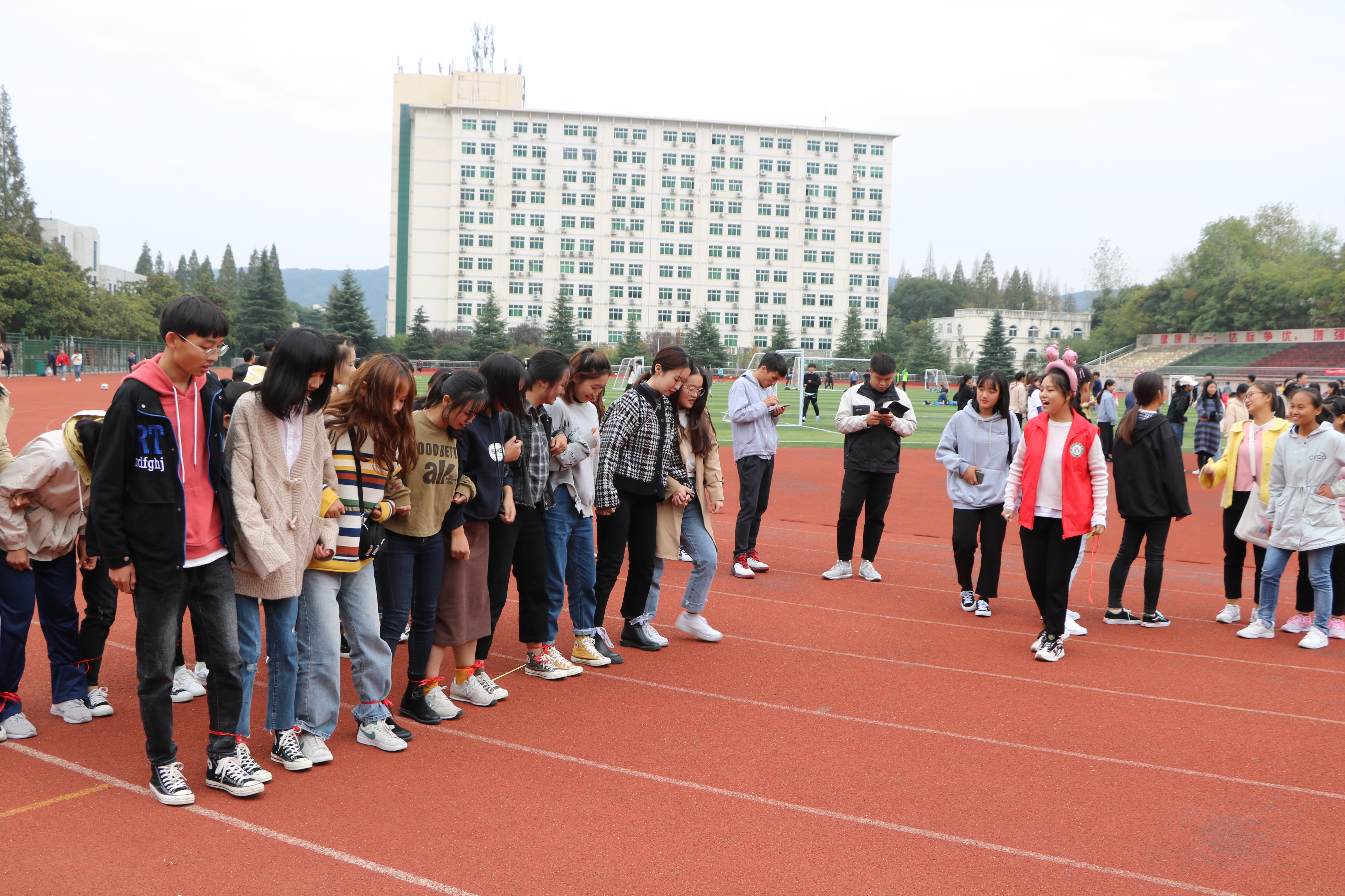 活动开始前,心理健康部组织参与活动人员自由组队,并向大家详细介绍活动规则。随后,各小组以部门为单位井然有序的进行游戏。在“猜猜看”游戏中,同学们充分发挥自己的想象力和语言表达能力,展现了同学们之间的默契配合。在“绑腿接力赛”游戏中,各小组明确分工、同心协力,一起为胜利而努力。随后,心理健康部为表现出色的前三个部门颁发了奖品。最后,素质拓展活动在欢声笑语中圆满结束。