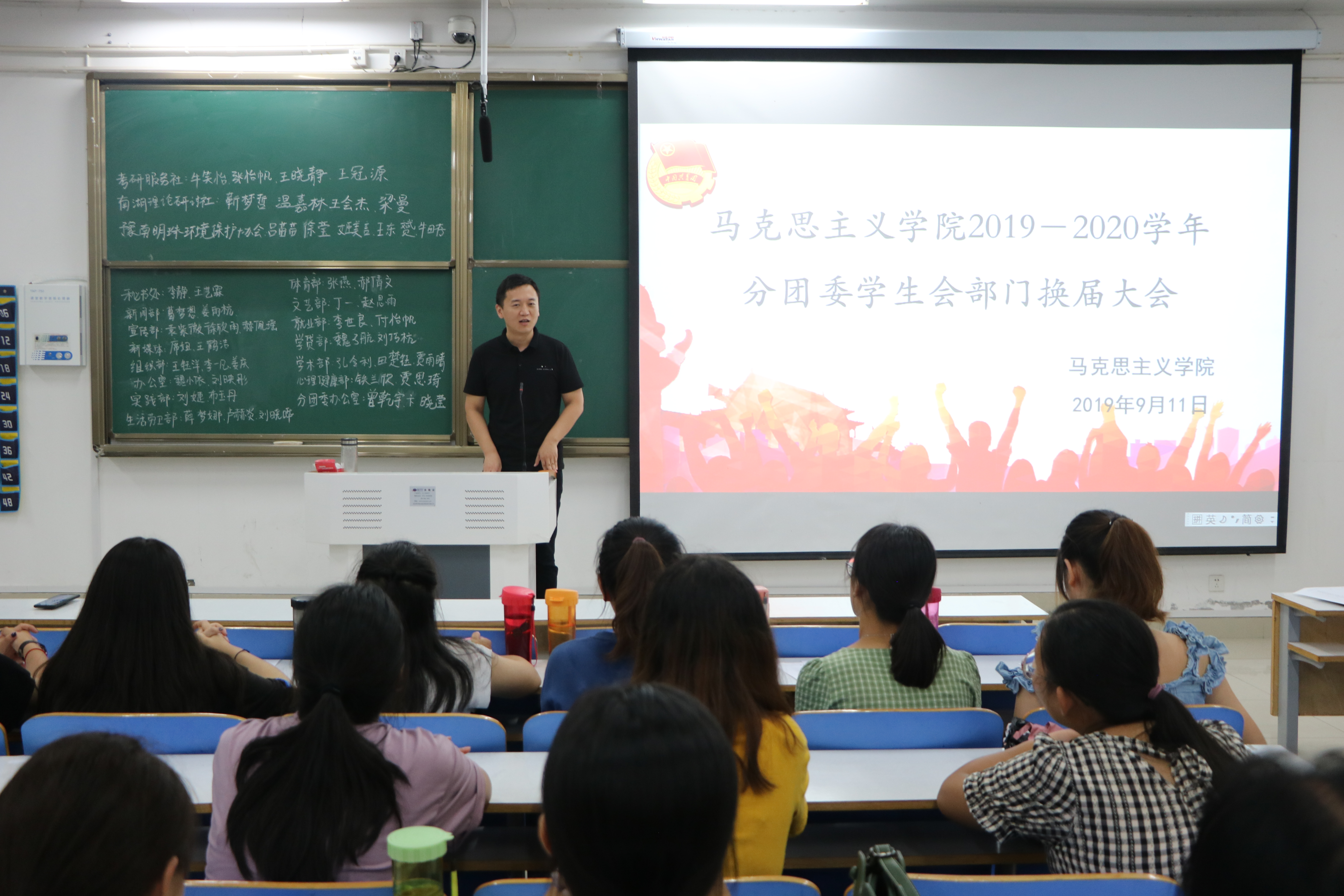 9月11日晚,七大罪 于社科楼516教室举行2019-2020学年学生会部门换届大会,团委书记曹栋与学生会全体成员共同参加了本次换届大会。大会由王文芳主持。