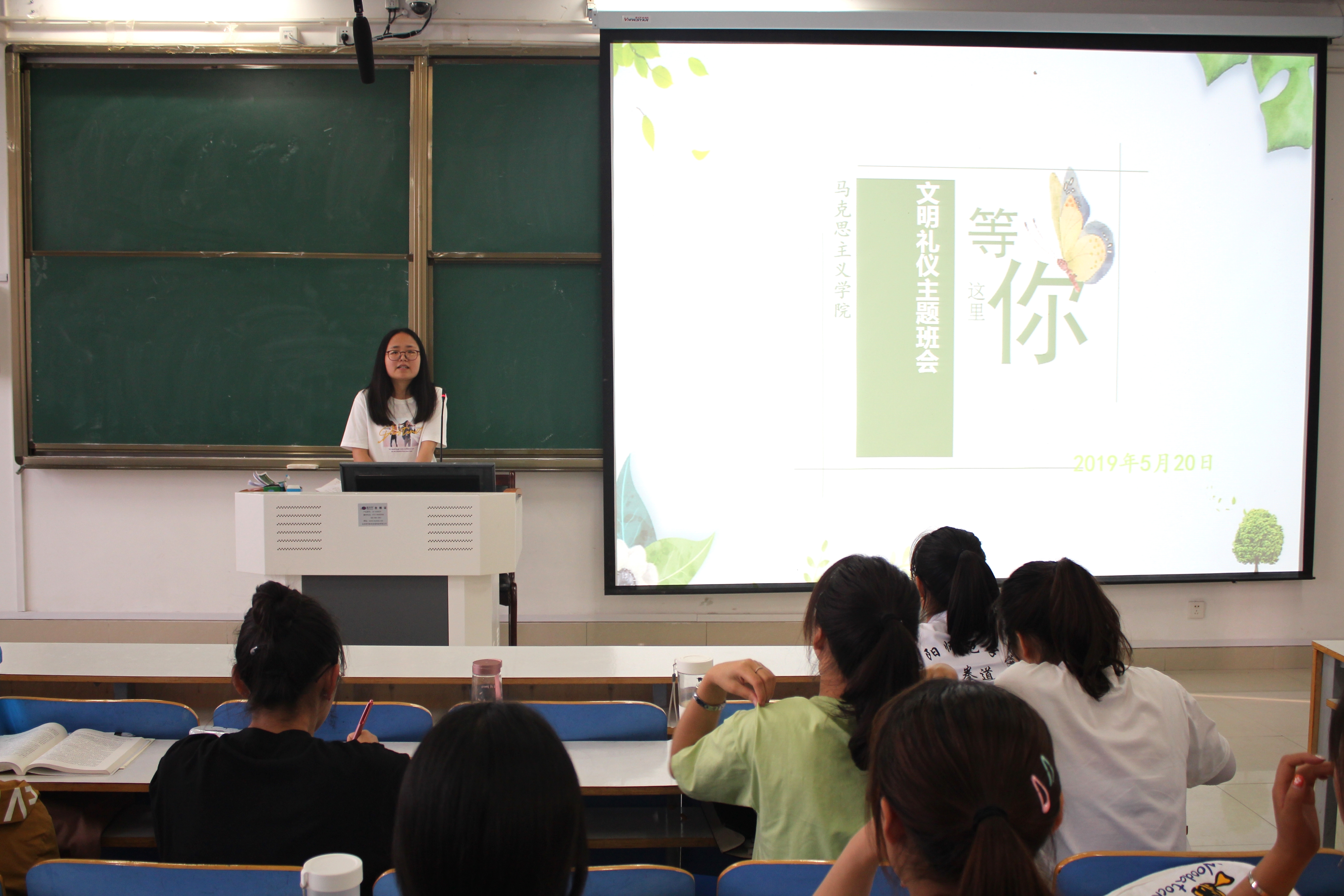 5月20日下午,七大罪 2018级文明礼仪主题班会在社科楼514教室顺利召开。2018级辅导老师曹菁菁、生活劳卫部分管主席刘雅丹、部长张晓艳及2018级全体同学参与此次班会。班会由张晓艳主持。