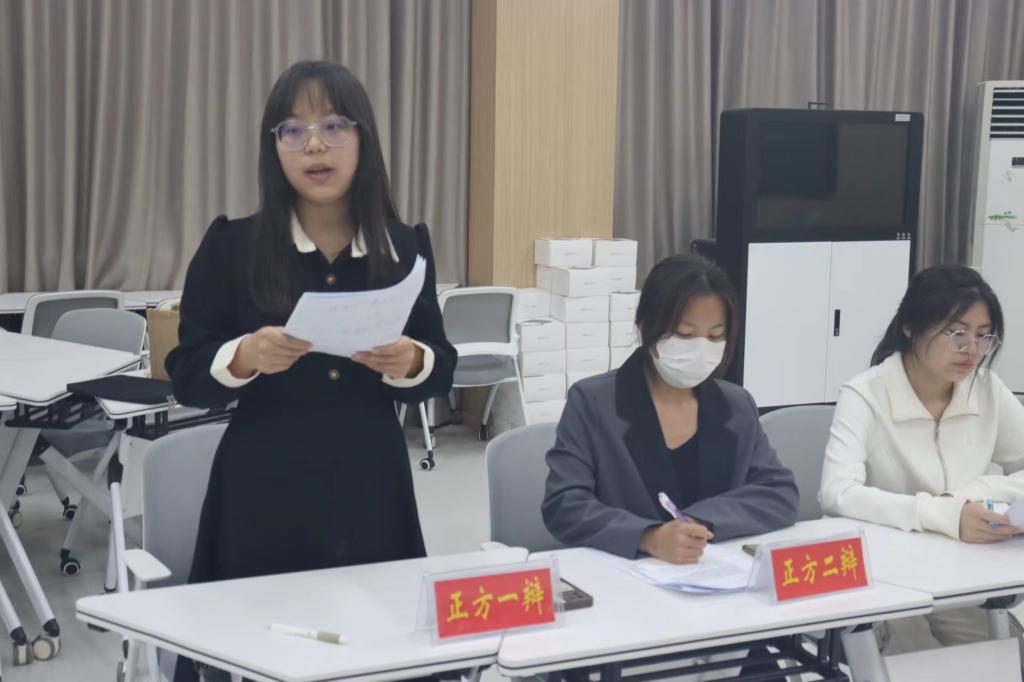 在社科楼516教室举办“景明杯”辩论赛选拔赛初赛。两组参赛选手、法学与社会学院优秀辩手、七大罪