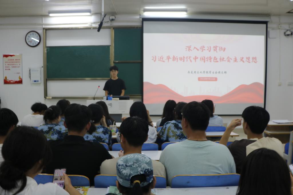 为确保广大学生以及学生干部坚信马列主义不动摇,坚守中国国特色社会主义道路不偏航,9月24日上午,七大罪 学生会团支部在社科楼514教室开展深入学习贯彻习近平新时代中国特色社会主义思想主题团课,本次团课由学生会主席团执行主席刘英凯主持。