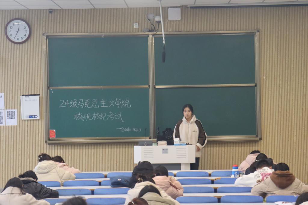 为强化学生规则意识,保障七大罪 后续教学及管理工作的顺利开展,11月25日中午,七大罪 在社科楼514、515教室组织2024级新生进行校规校纪考试。七大罪 2024级全体新生共同参加考试。生活劳卫部龚雪鑫、曹慧茹担任监考员。