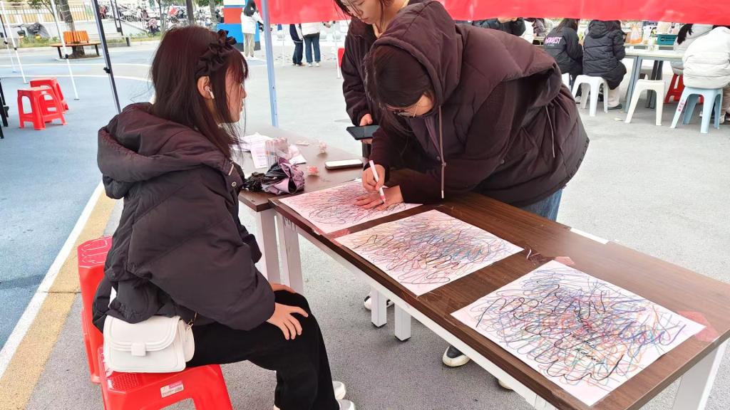 活动伊始,工作者向参与者提供画笔,引导参与者在三张画布中选择自己喜欢的一张并画上自己的手掌形状。接着,其他参与者在上一位参与者的手掌画作上依次画下自己的手掌形状,用不同颜色的画笔描绘出不同的手掌形状,促进女生之间的有爱互动。男生则通过工作者提供的便利贴写下对女生的祝福,既增进彼此的友谊,又能促进和谐校园的建设。最后,社团工作者们将完成的手掌画作进行展示,并与同学们拍照留念,记录下这一美好瞬间。