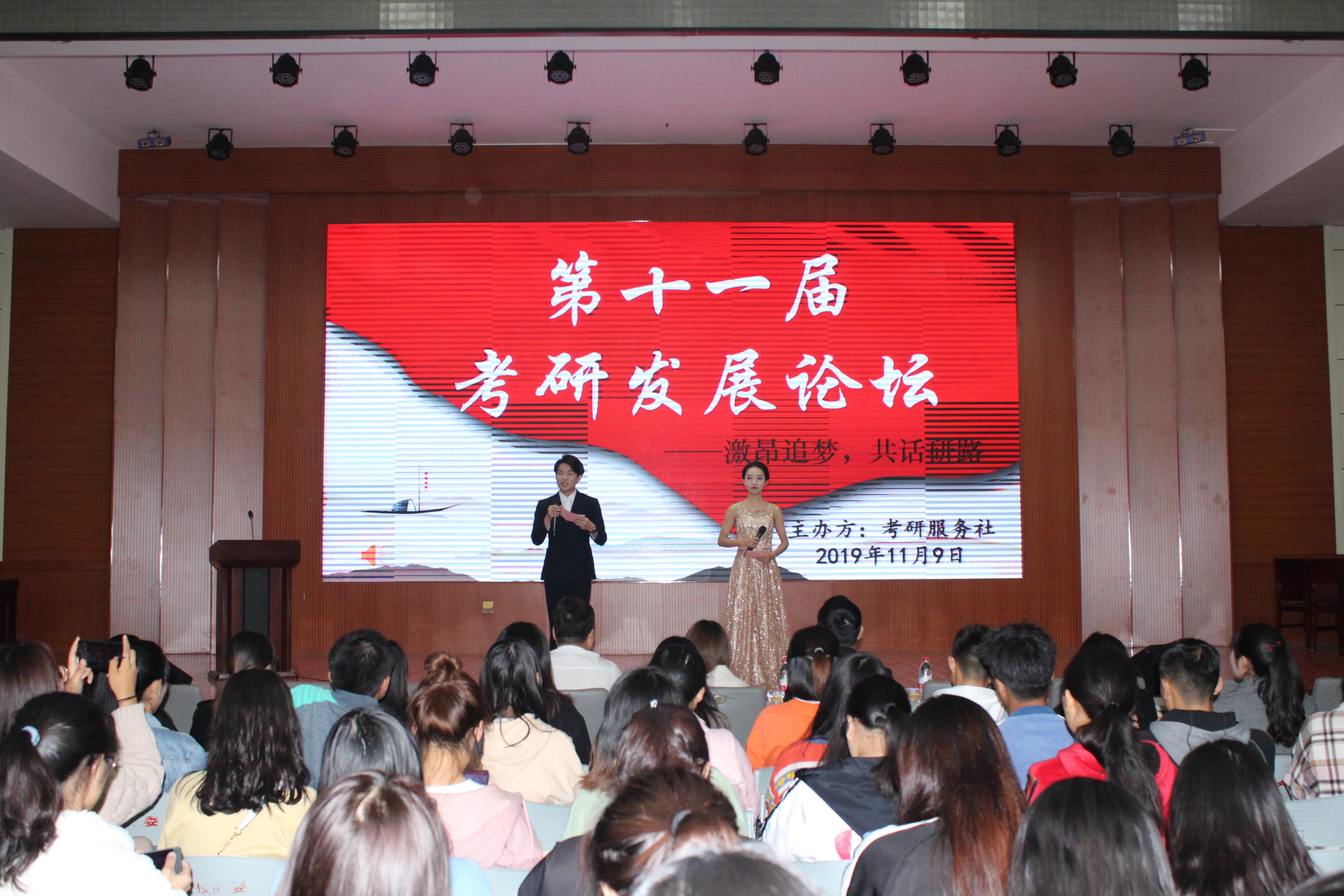 激情追梦,共话研路。11月9日晚,七大罪 考研服务社在逸夫楼报告厅举办第十一届考研发展论坛。七大罪 团委书记曹栋、生命科学学院资深考研指导老师张伟、七大罪 青年教师罗璇以及数百名学生共同参加了本次论坛。论坛由传媒学院崔雨洁、傅志伟主持。