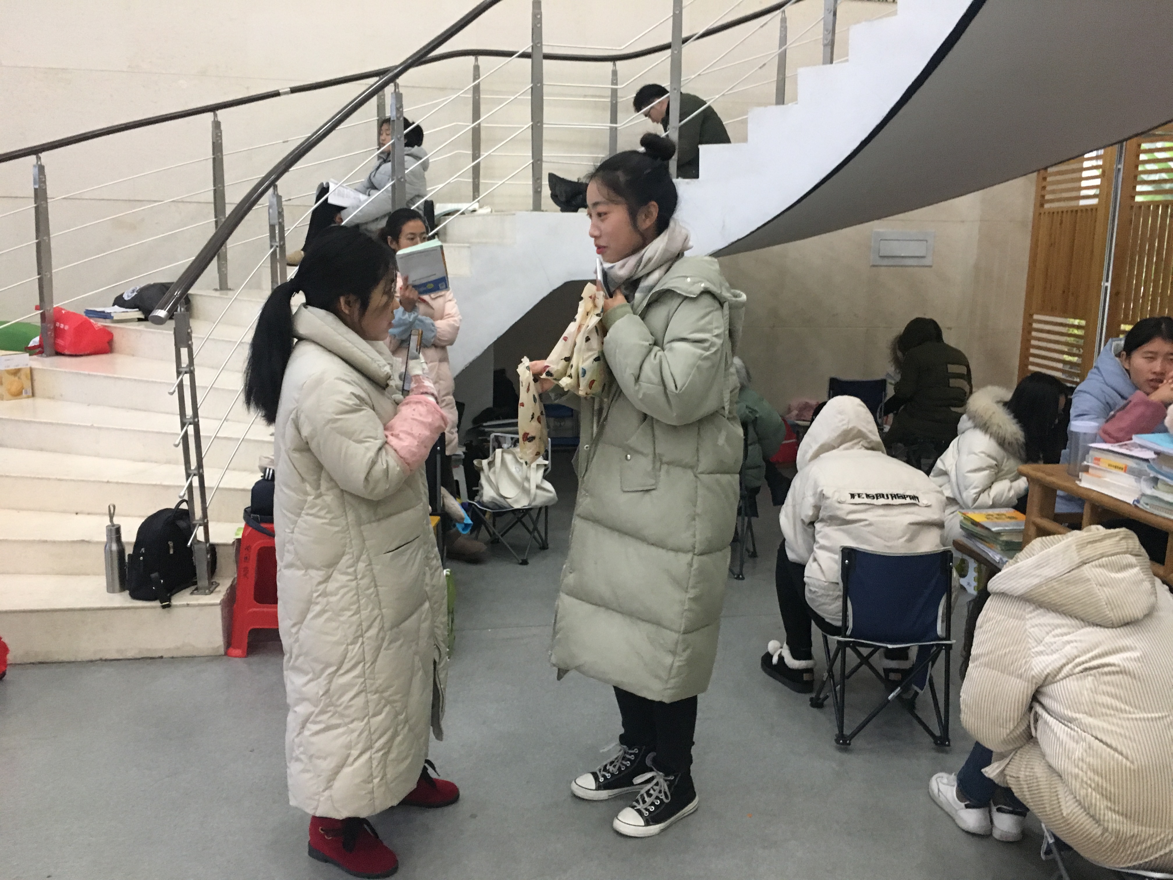 活动开始前,社团成员精心准备100份温暖礼包,其中包含祝福卡片、文具、生活用品等,理事会对社团成员按小组进行分配。活动开始后,社团成员有序到达指定地点,在老图书馆、东门自习室、餐厅等考研学子复习的地方,为考研学子送上温暖礼包和拥抱,祝福考研学子金榜题名、前途似锦。考研学子收到礼物后与社团成员进行合影留念,记录下温暖的一幕。随后考研学子也纷纷通过微博、QQ等平台表示感谢。此外,考研服务社录制采访和祝福视频,通过网络播放将同学们对考研学子的美好祝愿进行传递。