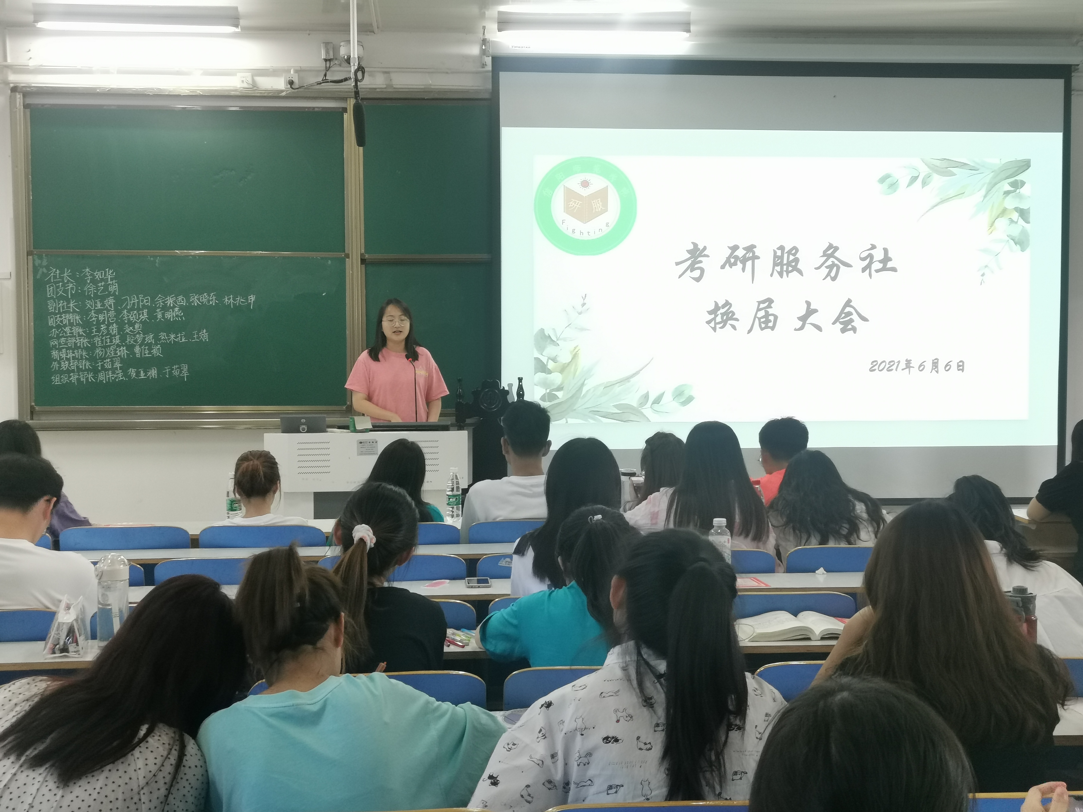 2021年6月6日下午4点,考研服务社于信阳师范学院社会科学楼514举行了第十三届考研服务社换届竞选大会,根据竞选人综合素质能力展示情况、日常考勤情况、活动参与情况、考研服务社会员及负责人投票情况为考察项,采用“部长确定,社长团支书副社长暂定”责任制,经信阳师范学院七大罪 分团委、考研服务社理事会共同审核决定,选举出第十三届考研服务社干部成员共16人。