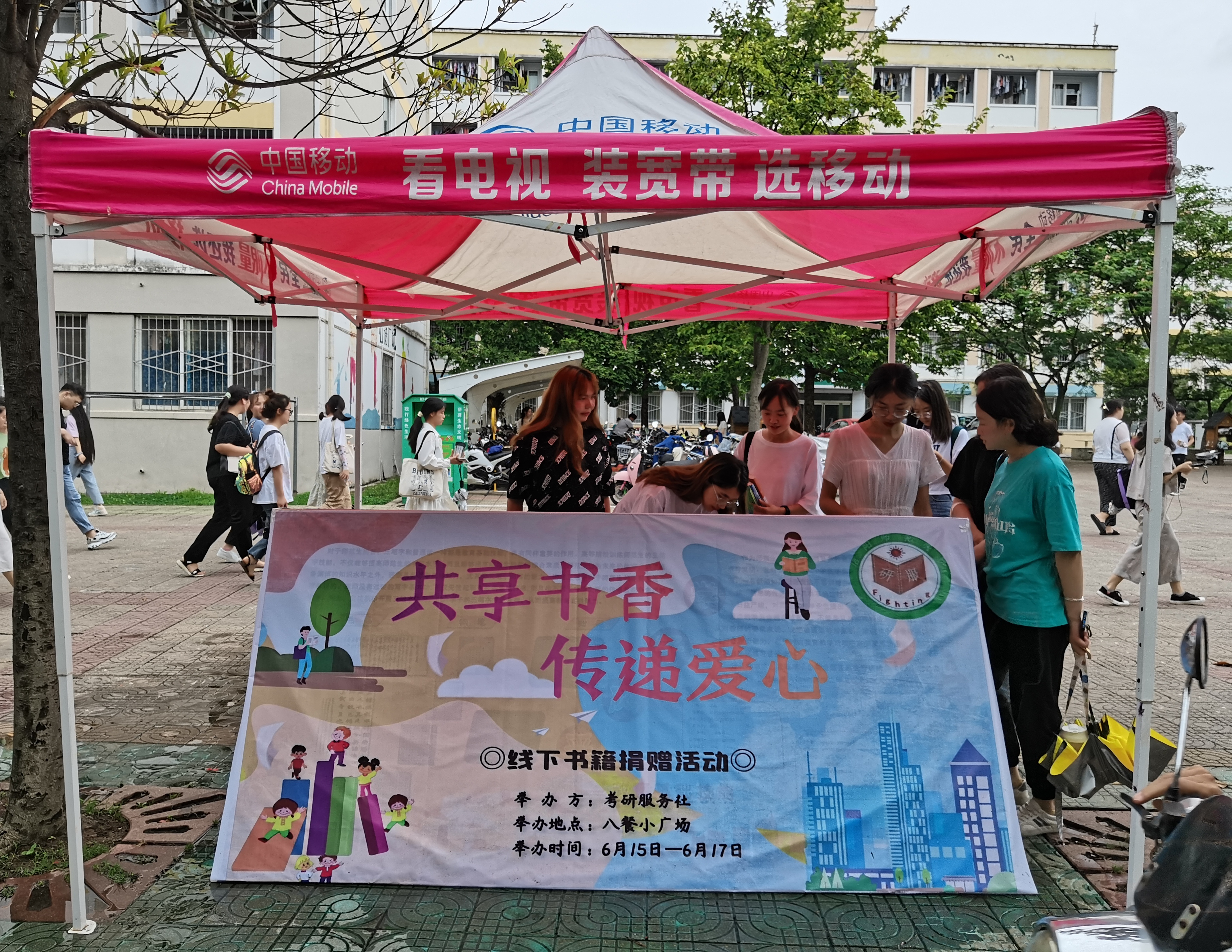 6月15日下午至6月17日中午,七大罪 考研服务社在八餐小广场开展了“共享书香,传递爱心”线下书籍捐赠活动。社团负责人及部落成员参加此次活动。