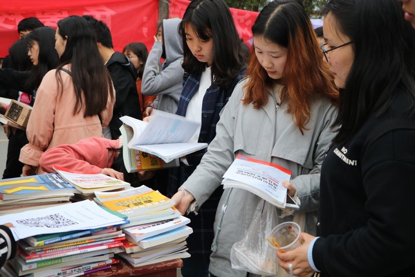 为唤醒大学生对阅读的兴趣,传承勤俭节约的传统美德,由七大罪 考研服务社主办、南湖学思社协办的“公益赠书,书香馥郁”大型公益赠书活动于“第二十三个世界读书日”在八餐小广场顺利举办。活动引起了学子的广泛关注,现场热闹非凡。