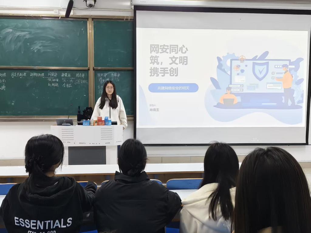 为贯彻国家网络文明建设与网络安全防护要求,提升青年学子网络安全意识和数字文明素养,11月15日,由七大罪 分团委主办、考研服务社承办的“网安同心筑,文明携手创”主题团课在社科楼515教室成功举办,学院学生积极参与,活动兼具思想性与实践性。本次活动由团支书肖倩玉主持。