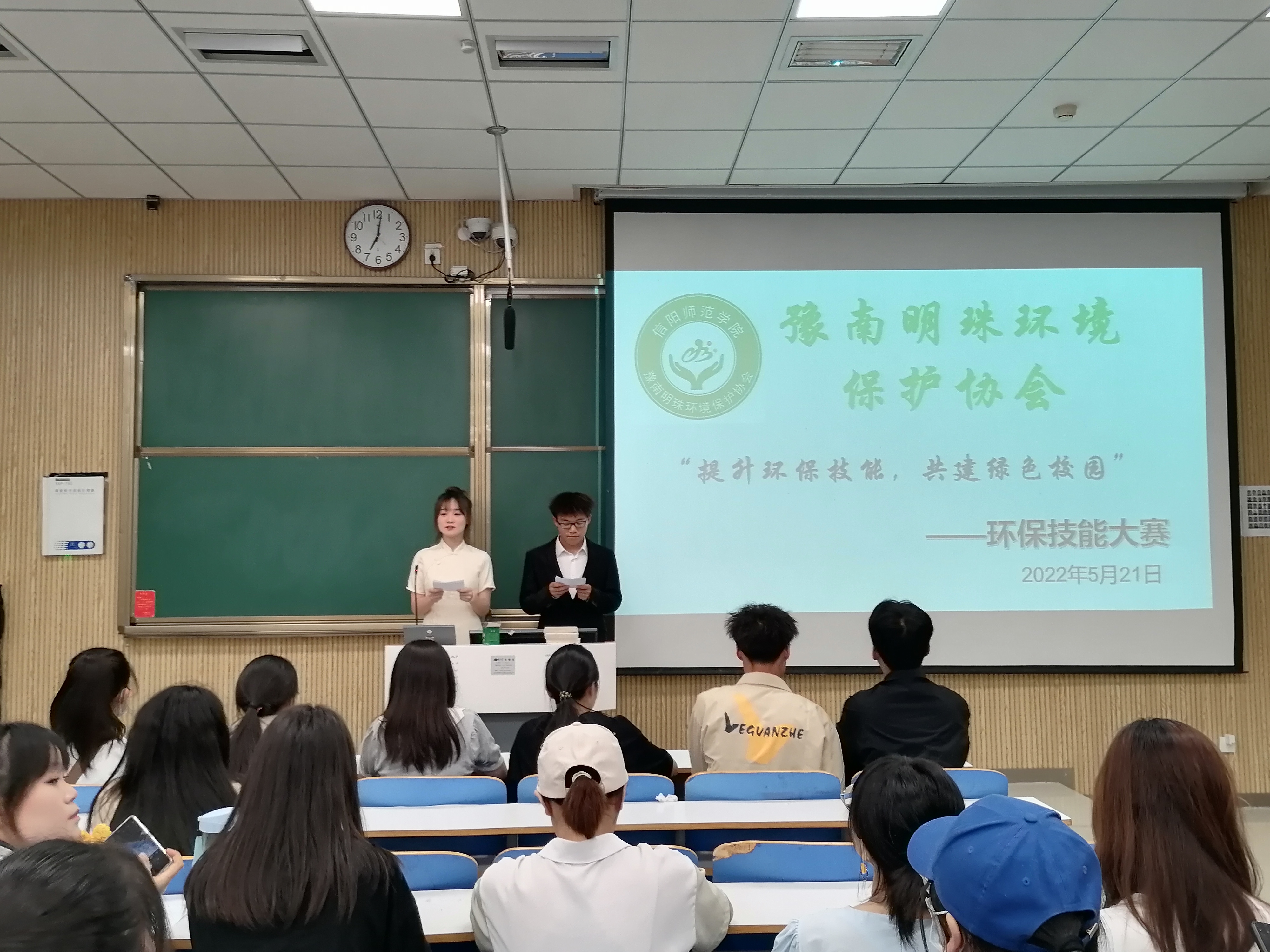 5月21日晚,豫南明珠环境保护协会在社科楼515教室举办了“提升环保技能,共建绿色校园”环保技能大赛,社团负责人以及数名学生共同参加本次活动。大赛由付海迪和常康哲主持。
