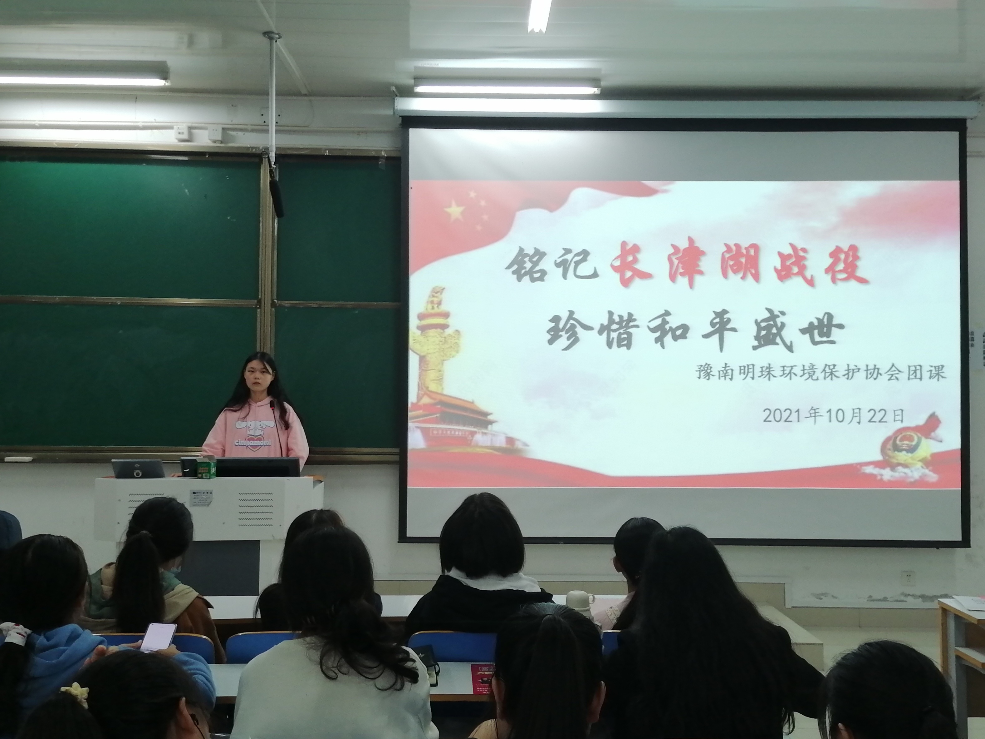 为激发社员珍惜和平意识,提升社员爱国主义情怀,10月30日晚上,豫南明珠环境保护协会“铭记长津湖,珍惜和平盛世”主题团课在社科楼516顺利举行。各部长及全体社团成员参加了本次团课,团课由社长夏岩主持。