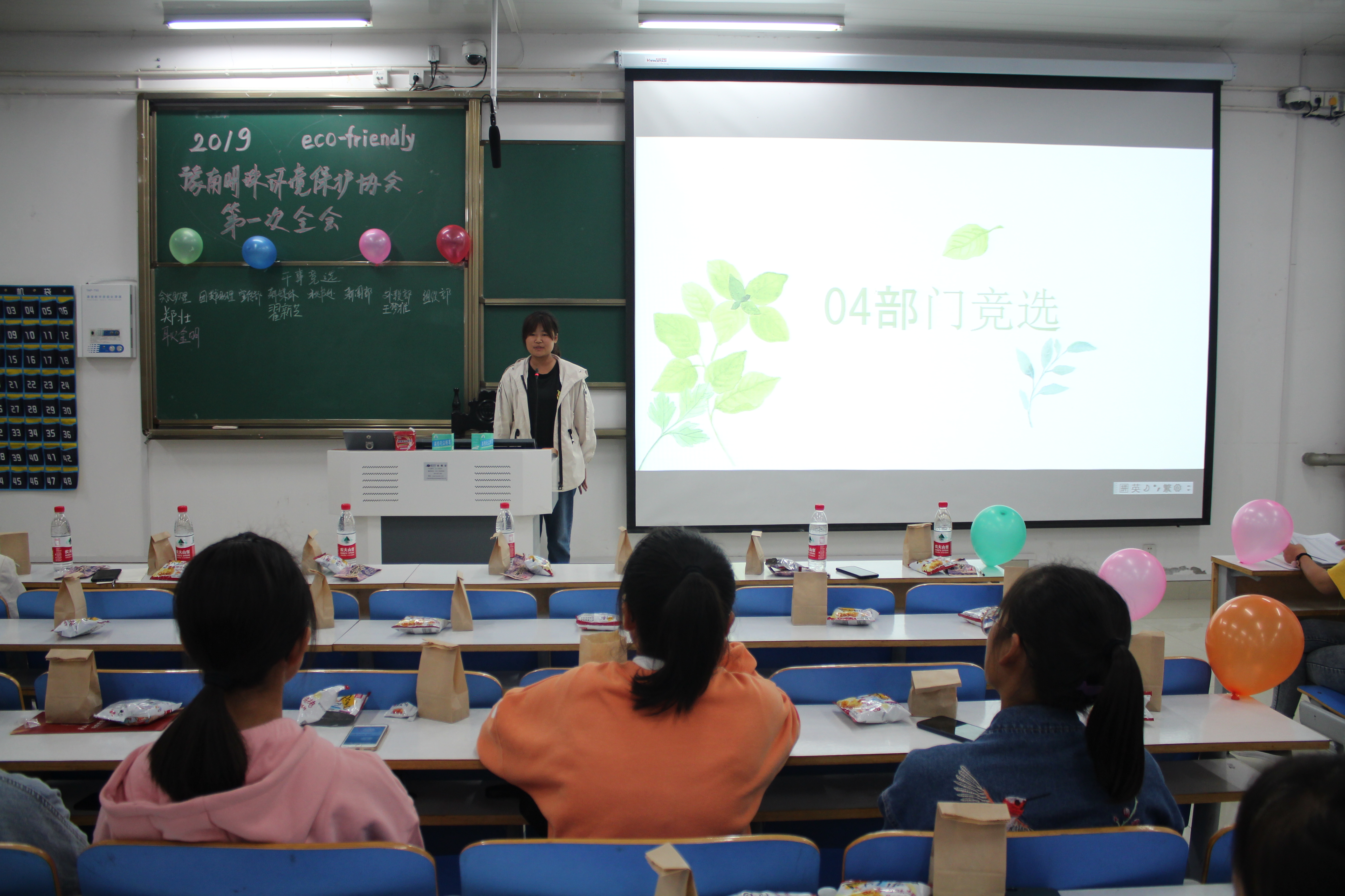 首先,曹栋着重强调培养良好环保习惯和环保意识的重要性,要求大家从自身做起,从小处着眼,美化校园,共同建设美丽师院。同时,他提出,参与社团工作有利于提升个人能力、志愿服务意识、拓展个人兴趣,希望全体成员在社团工作中充分实现自身价值。随后,前社长丁素艳、前团支书郑梦丹上台发言,号召大家踊跃参与,并对社团未来发展寄予深切厚望。社长、团支书和各部门部长结合ppt向社团新成员详细介绍了社团基本情况、发展历程以及社团各部门的机构设置、职能分工情况,鼓励同学们积极参加社团活动。竞选社员依次上台发表竞选宣言,现场气氛十分热烈。最后,豫南明珠环境保护协会第一次全会在愉快的歌声中完满结束。